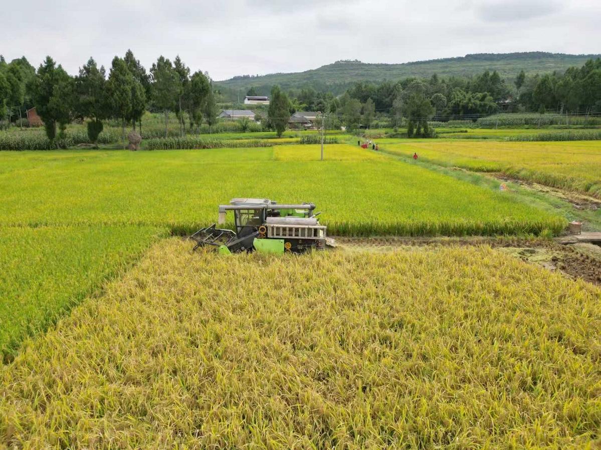 稻穗黃農(nóng)機(jī)忙,游仙23萬(wàn)余畝稻田開(kāi)啟“金色收割季”