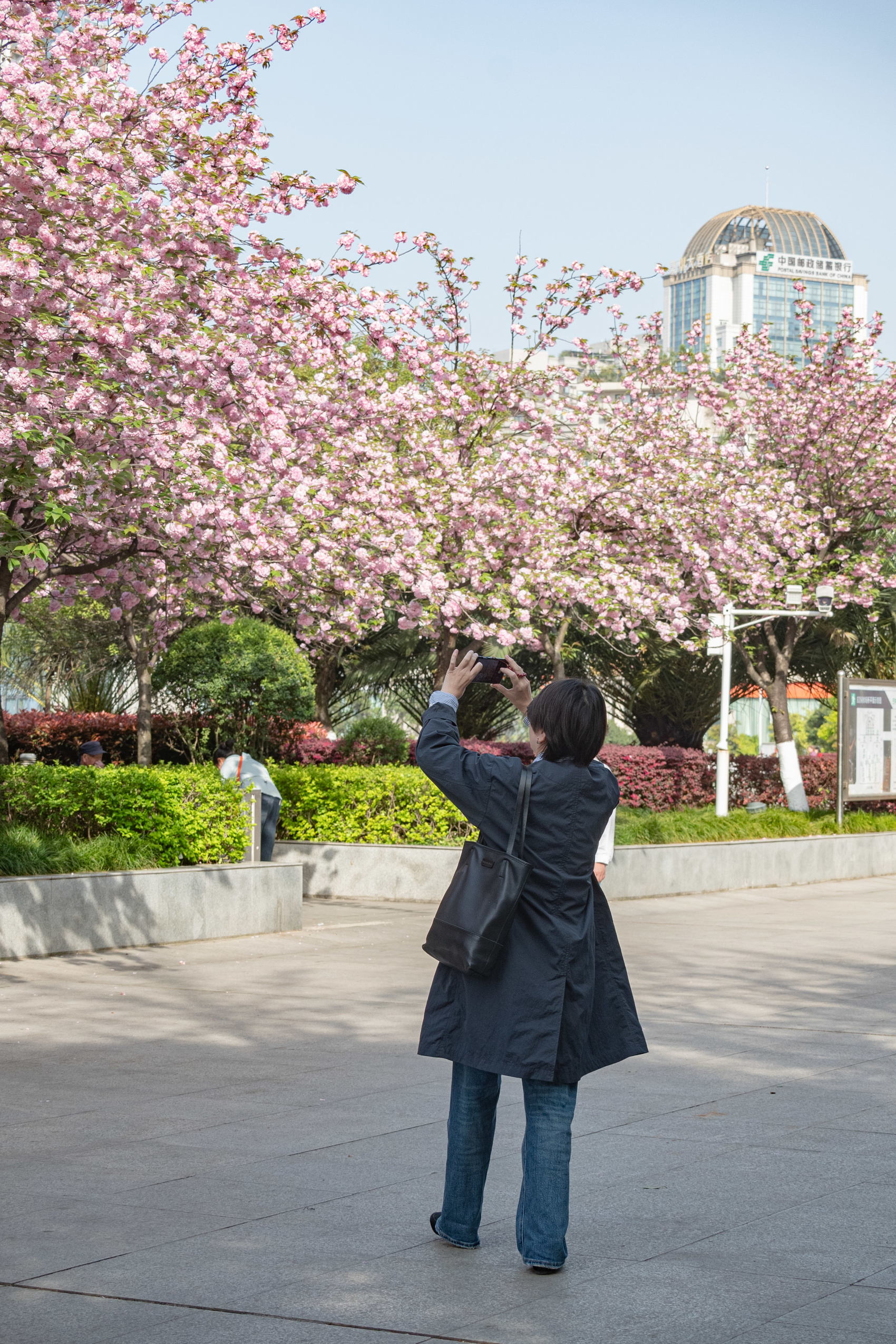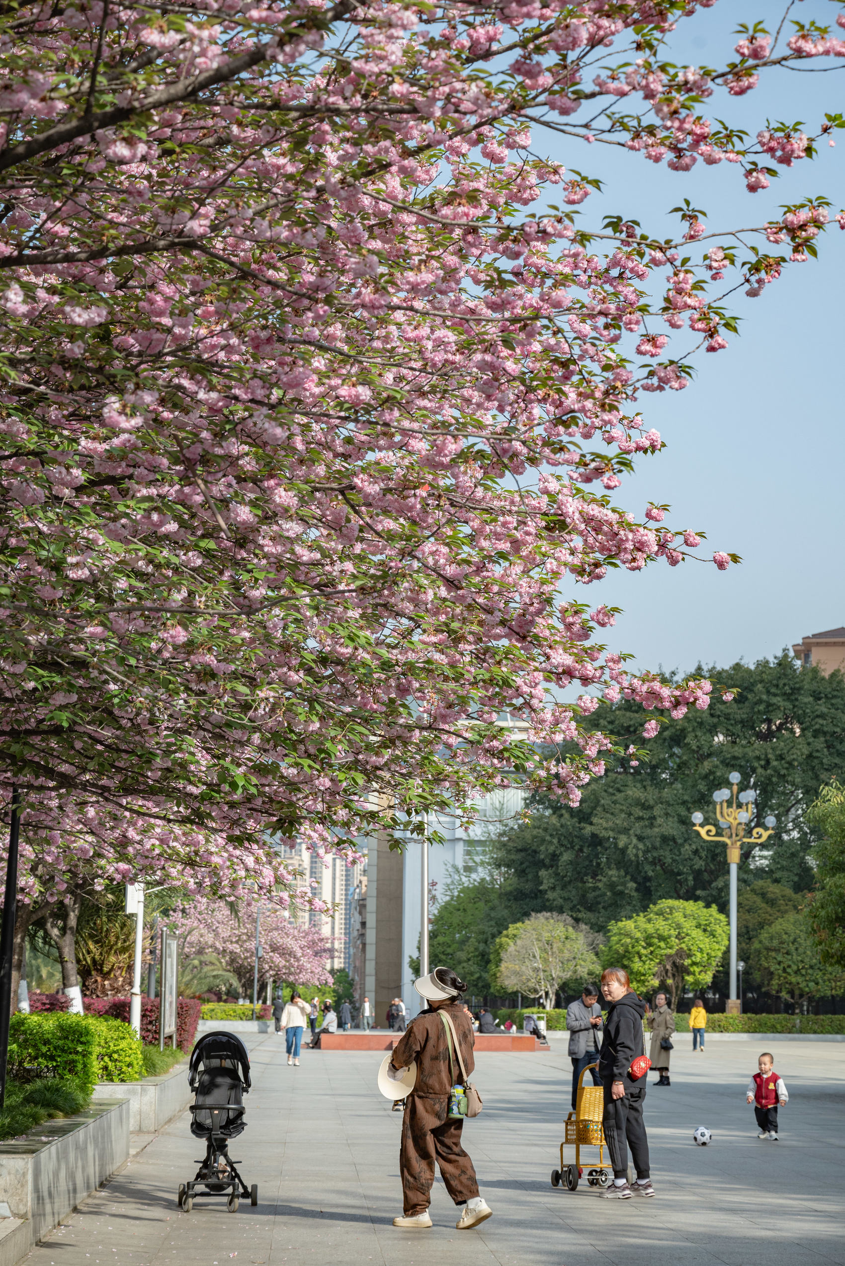 連日來,隨著巴中氣溫節(jié)節(jié)攀升,城區(qū)內(nèi)的櫻花迎來盛花期。在巴中城市廣場(chǎng)內(nèi),粉紅的花朵綴滿枝頭,層層疊疊、相互簇?fù)恚瑢渲Χ級(jí)旱梦⑽⒌痛梗鹑鐙汕蔚拇喝站`。微風(fēng)拂過,花瓣如粉蝶般翩翩起舞,緩緩飄落,好似下起一場(chǎng)浪漫的“櫻花雨”。如此美景,引得眾多市民前來駐足拍照觀賞,不少市民還自帶“道具”與櫻花合影打卡,記錄下這春日里的美好瞬間。