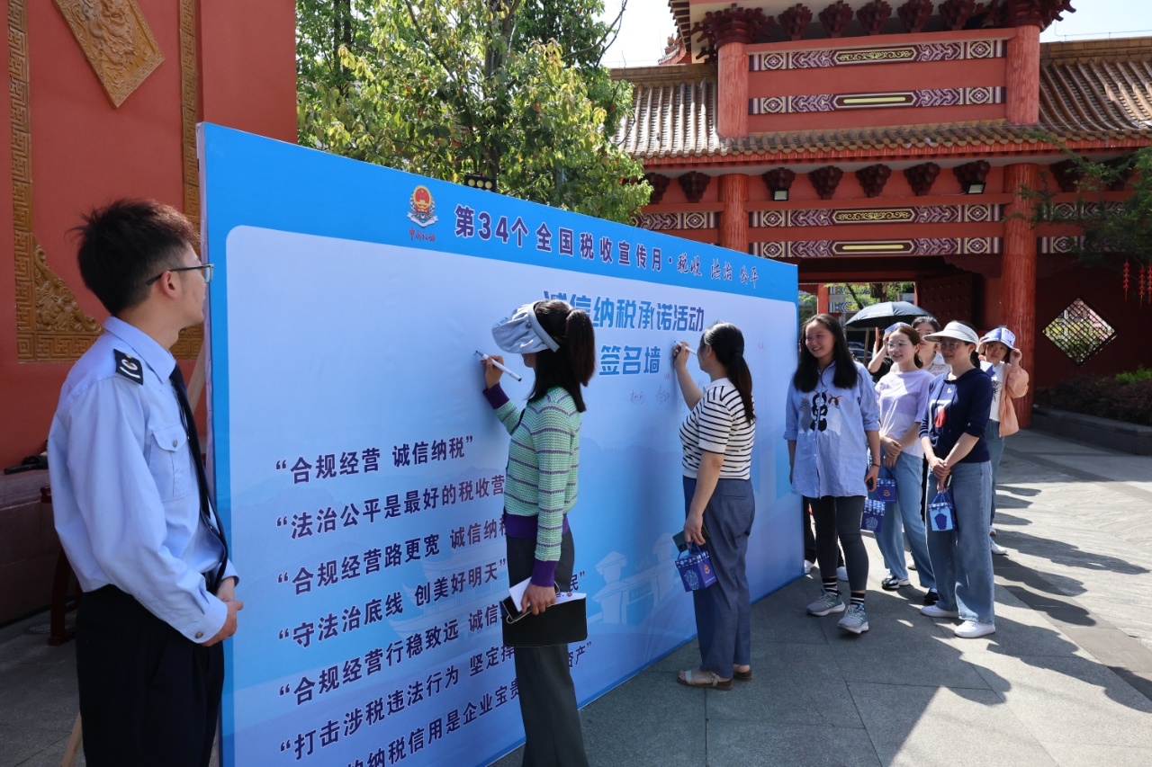 今年4月是全國第34個稅收宣傳月。國家稅務總局蘆山縣稅務局緊扣“稅收?法治?公平”主題,在文廟創新開展“稅法潤姜城?惠風活百業”普法活動,蘆山縣的企業代表們齊聚“姜城稅諾”簽名墻前,對依法納稅許下莊嚴誓言。