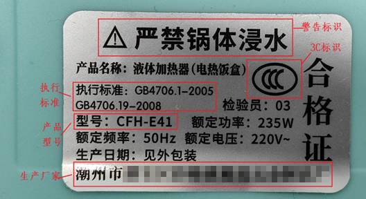 產品整體以及加熱器以外的材料和部件均找不到廠家和標識信息。未明示各個部件的生產廠家或對整套產品質量負法律責任的生產廠家,使產品存在較大安全隱患。