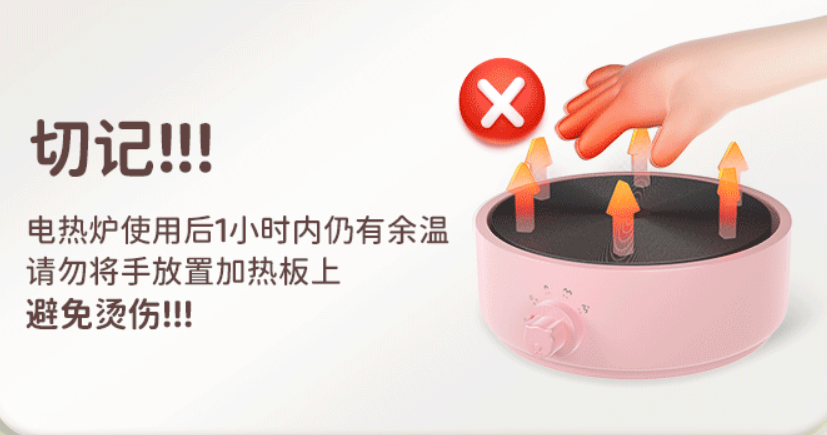 特別提醒:在使用時,加熱的食材或液體不應過滿,避免因食材溢出或鍋體溫度過高而意外燙傷。