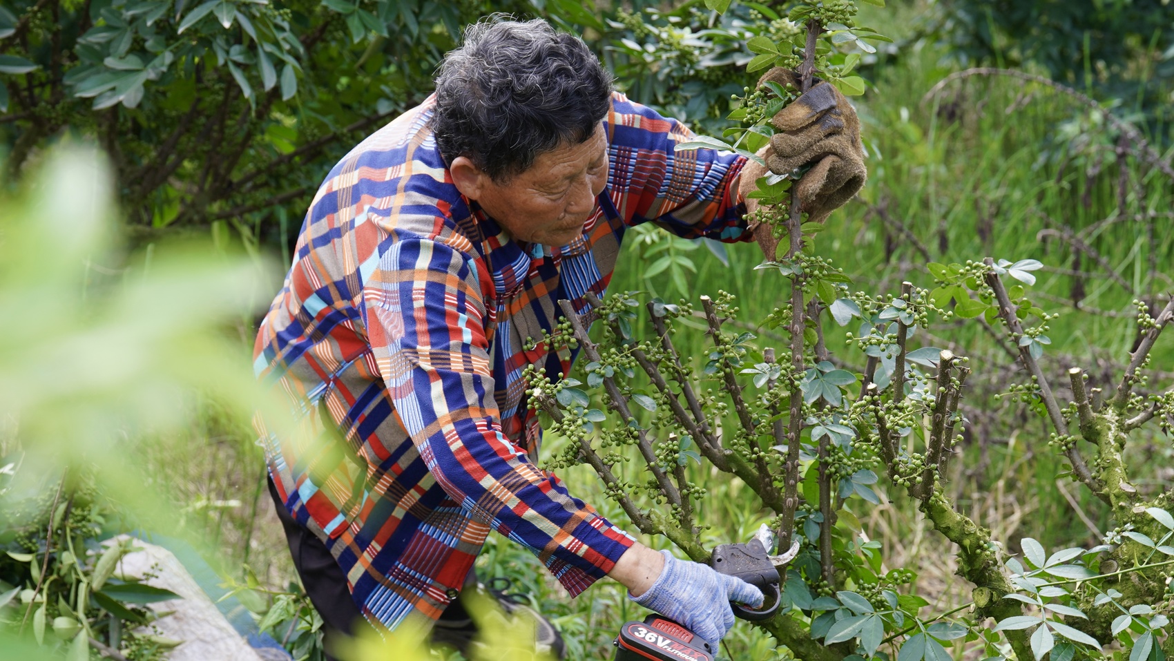6月5日,廣安青花椒現(xiàn)代農(nóng)業(yè)園區(qū)內(nèi),椒農(nóng)正在給青花椒樹叢剪枝。(胡力文 攝)
