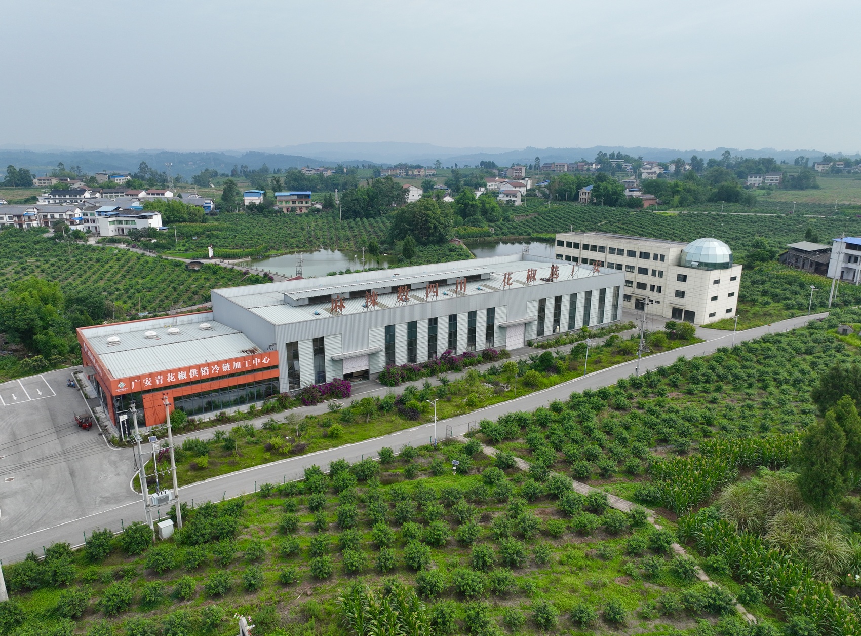 廣安青花椒現(xiàn)代農(nóng)業(yè)園區(qū)供銷冷鏈加工中心航拍。(胡力文 攝)