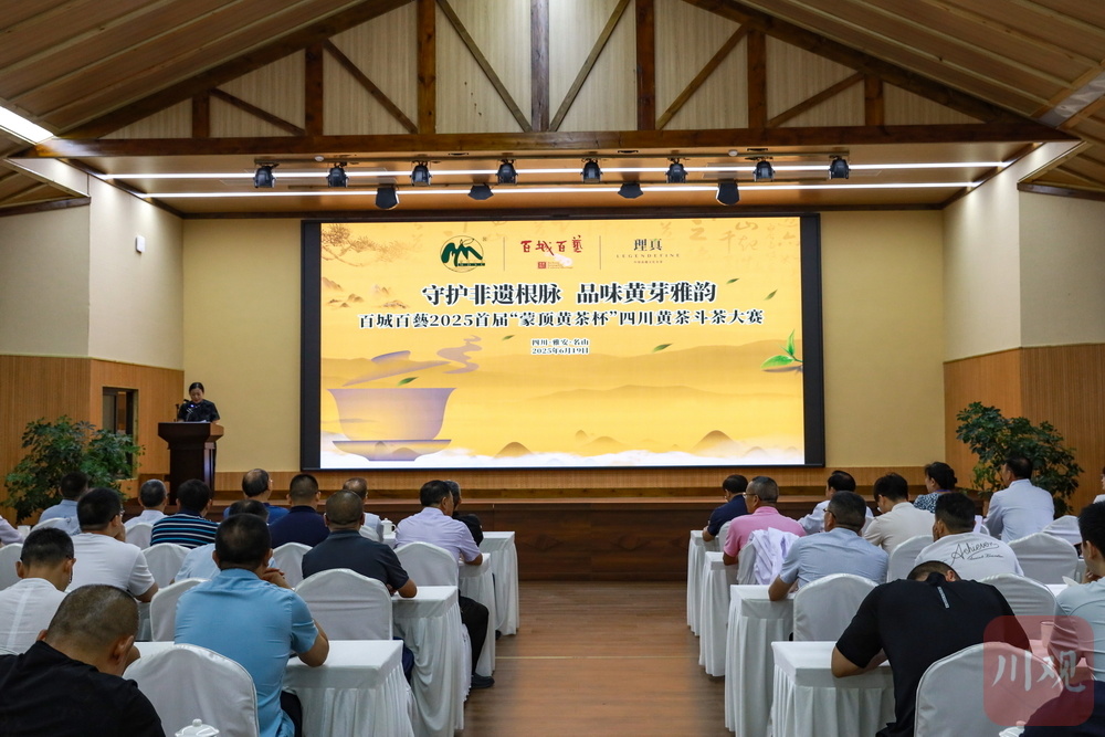 6月19日,百城百藝2025首屆“蒙頂黃茶杯”四川黃茶斗茶大賽在雅安市名山區舉行,大賽主題是“守護非遺根脈 品味黃芽雅韻”。