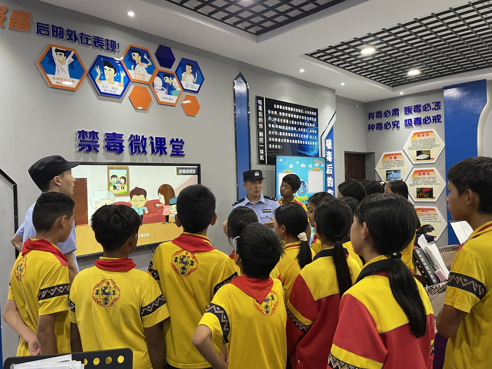 在學校禁毒微基地中,學生們通過“吸毒后的你,觸控一體機”“VR禁毒體驗”等虛擬場景,直觀地了解毒品的巨大危害。