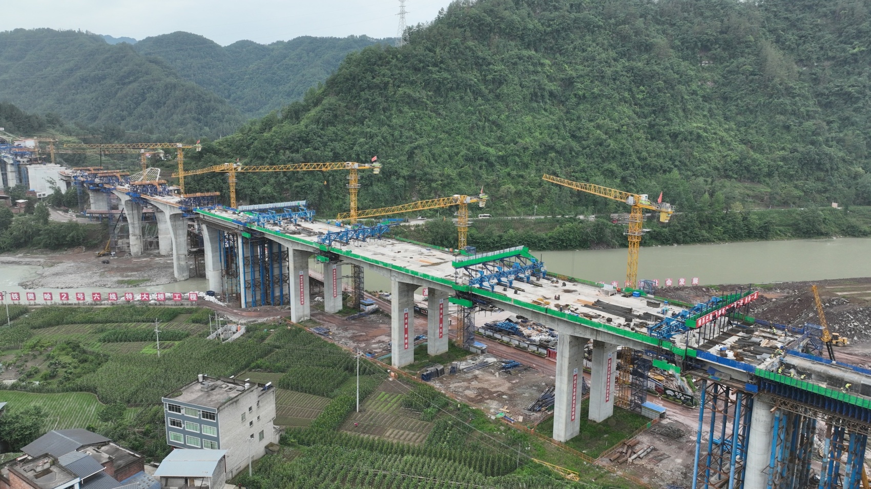 建設(shè)中的西渝高鐵宣漢南站一號(hào)橋。