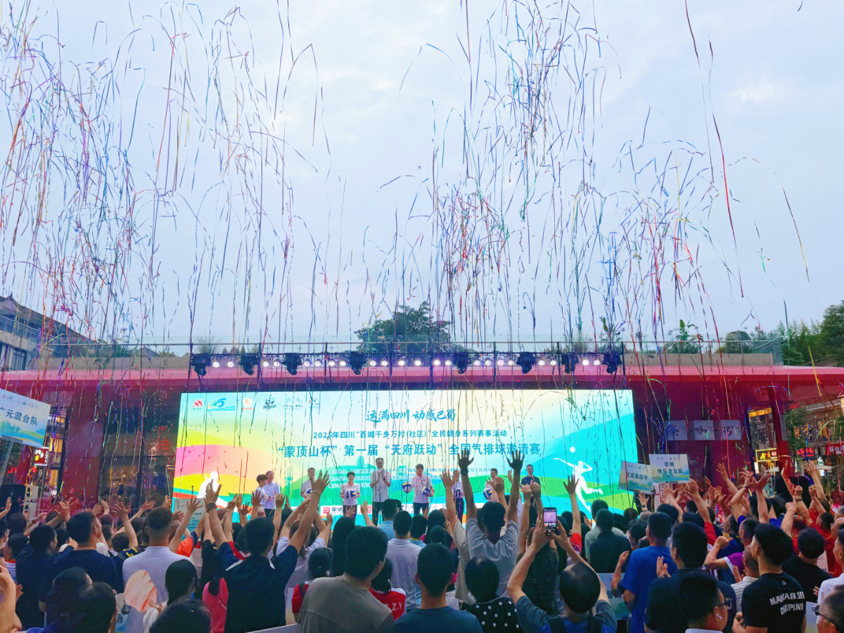 7月4日晚,2025年四川省“百城千鄉(xiāng)萬村(社區(qū))”全民健身氣排球系列賽暨“蒙頂山杯”第一屆“天府躍動”全國氣排球邀請賽在雅安市名山區(qū)開幕。