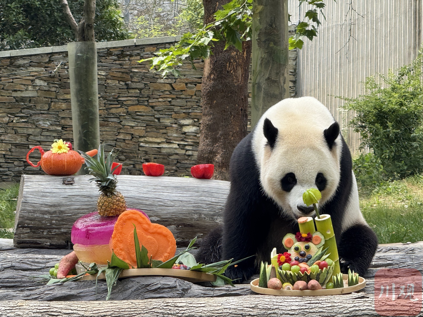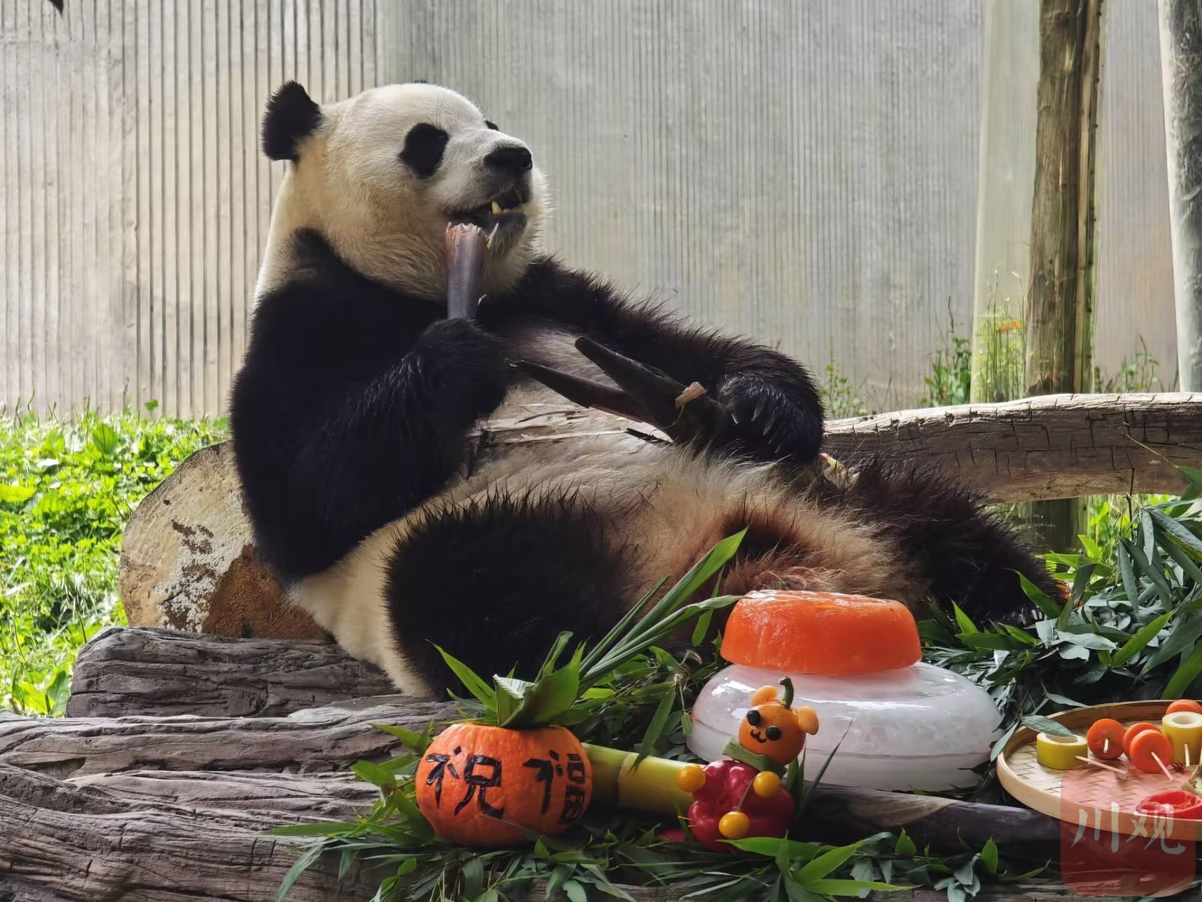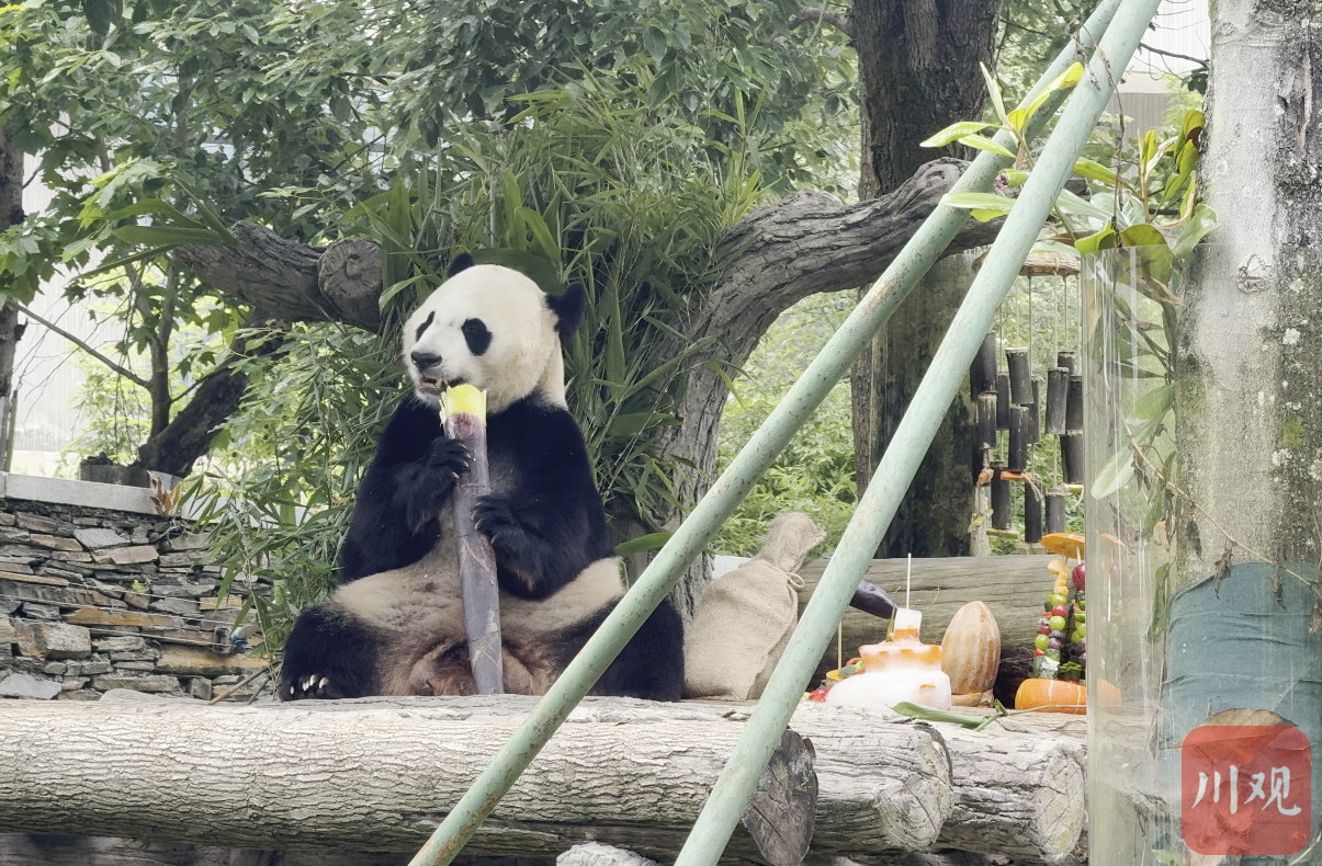 據悉,每年的7至9月,是圈養大熊貓的集中繁育季,也是大熊貓的生日季。在現場,飼養員們為近期過生日的大熊貓們精心準備了冰塊制作的生日蛋糕、胡蘿卜串、西瓜等食物豐容。為了給圈養大熊貓提供更好的福利,熊貓中心的大熊貓豐容專家團隊,針對不同年齡階段的大熊貓制定豐容計劃。