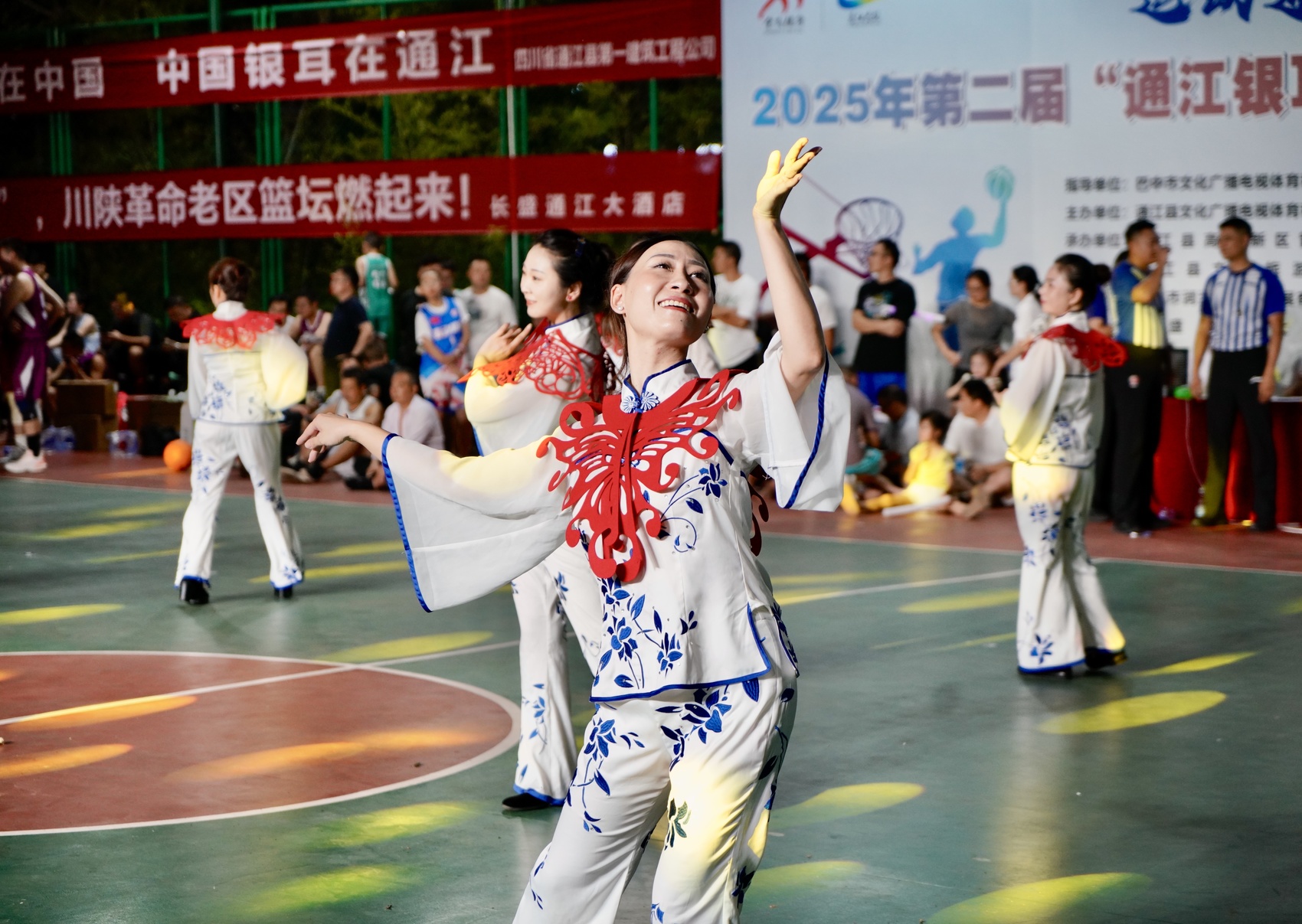 除了熱血沸騰的籃球賽,中場(chǎng)期間還有精彩紛呈的文藝節(jié)目表演,讓觀眾領(lǐng)略到通江豐富的文化底蘊(yùn)。“氛圍感拉滿,真的是一次很棒的體驗(yàn)。”來(lái)自重慶的游客王玲玲興奮地說(shuō),還舉行了非遺走秀,通江銀耳、蜀繡、竹編、剪紙等非遺項(xiàng)目一一展示,為大家?guī)?lái)了一場(chǎng)別開生面的文化盛宴。
