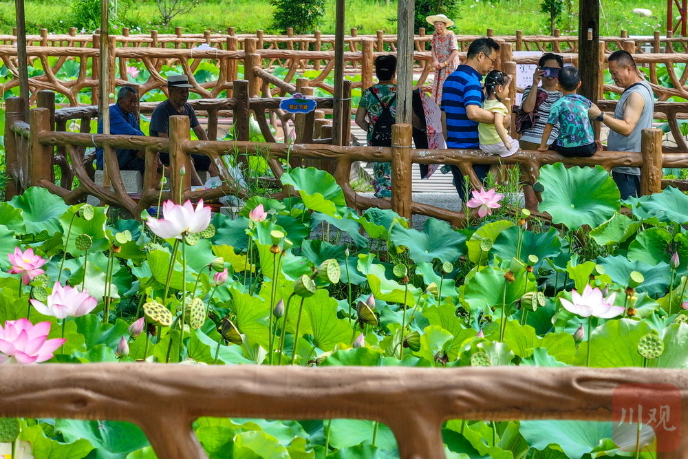 7月22日,雅安市天全縣城廂鎮(zhèn)龍尾村的百畝荷塘里,新品種“霞光女神”尤為顯眼,數(shù)百片紫紅色花瓣層層疊疊,越靠近花心越顯密集,讓不少游客直呼“顛覆了對荷花的認(rèn)知”。