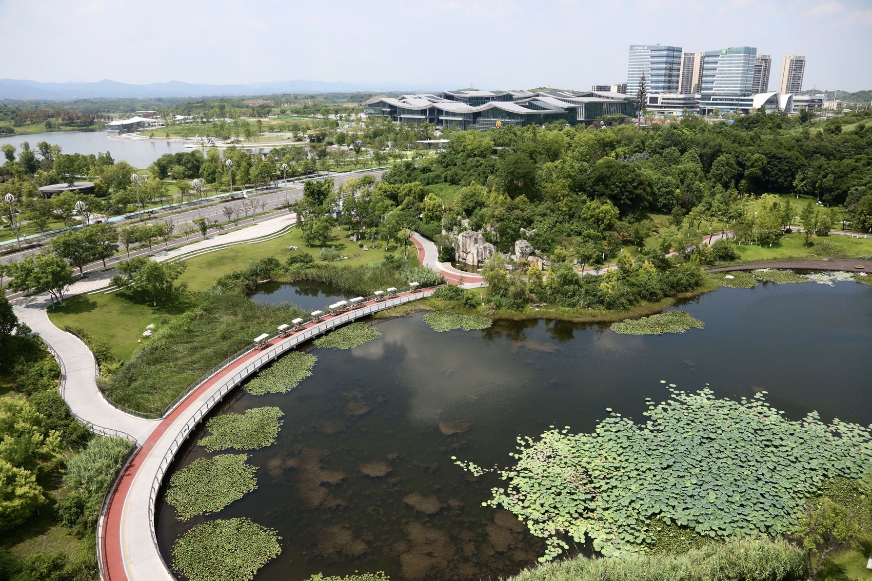 隨著成渝地區雙城經濟圈建設提速,以高端制造業為重點的東部新區已成為成都與重慶聯動的重要支點。這里不僅聚集了新能源汽車、航空制造、生物醫藥等前沿產業,還將智慧城市、數字化技術融入交通、能源和公共服務,為居民提供高效便捷的智能生活。站在龍馬湖公園觀景臺俯瞰,簡州新城全景盡收眼底:碧空如洗,湖水如鏡,岸邊綠樹與遠山倒影交織;遠處現代寫字樓錯落有致,與龍泉山起伏的線條相映成趣,勾勒出一幅城山相依的現代都市畫卷。