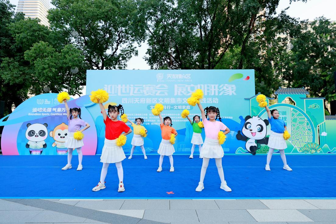7月30日晚,四川天府新區(qū)三利廣場上,一場以“迎世運賽會,展文明形象”為主題的文明集市活動熱鬧開場。活動由四川天府新區(qū)黨工委黨群工作部、四川天府新區(qū)精神文明建設(shè)辦公室、四川天府新區(qū)新時代文明實踐中心聯(lián)合主辦,通過舞臺表演、互動體驗、文明展示等形式,打造了集世運宣傳、文明倡導(dǎo)、家風(fēng)傳承于一體的盛會,讓市民在歡樂中感受世運精神,在體驗中踐行文明新風(fēng)。