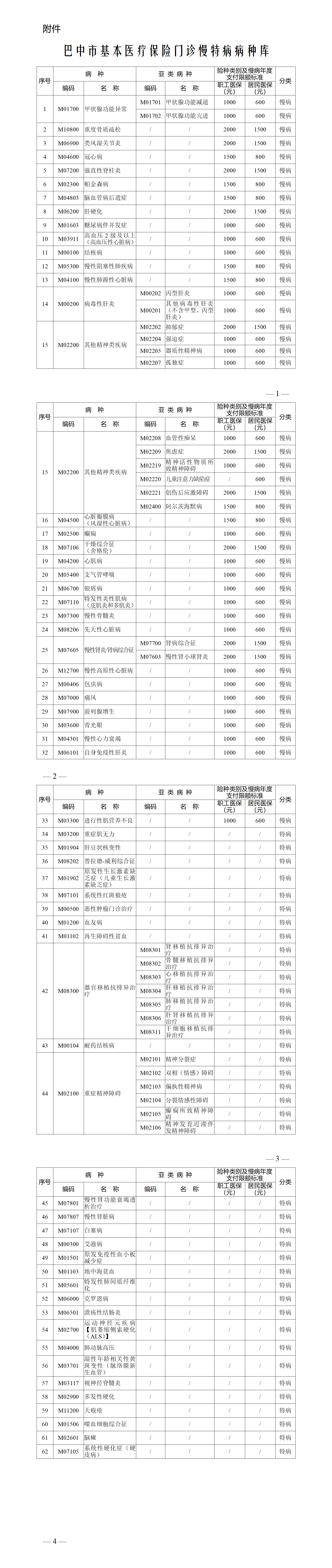 在主要內(nèi)容方面,《細(xì)則》統(tǒng)一規(guī)范了病種范圍,將《四川省基本醫(yī)療保險(xiǎn)門(mén)慢特病病種庫(kù)》明確的病種全部納入管理,把原門(mén)診特殊疾病管理的一類(lèi)、二類(lèi)疾病統(tǒng)一調(diào)整為全省規(guī)范的門(mén)診慢特病,政策出臺(tái)后,巴中市門(mén)診慢性病數(shù)量增加至 33 種,門(mén)診特殊疾病數(shù)量增加至29種。