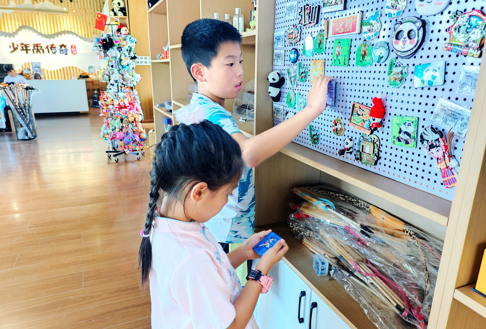 小朋友在少年禹主題文創商店挑選冰箱貼