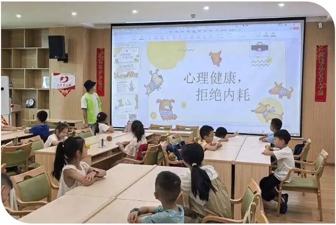 7月9日,深入社區普及心理健康知識,利用“情緒樹洞”、“信任游戲”等互動形式提升孩子們的心理韌性。