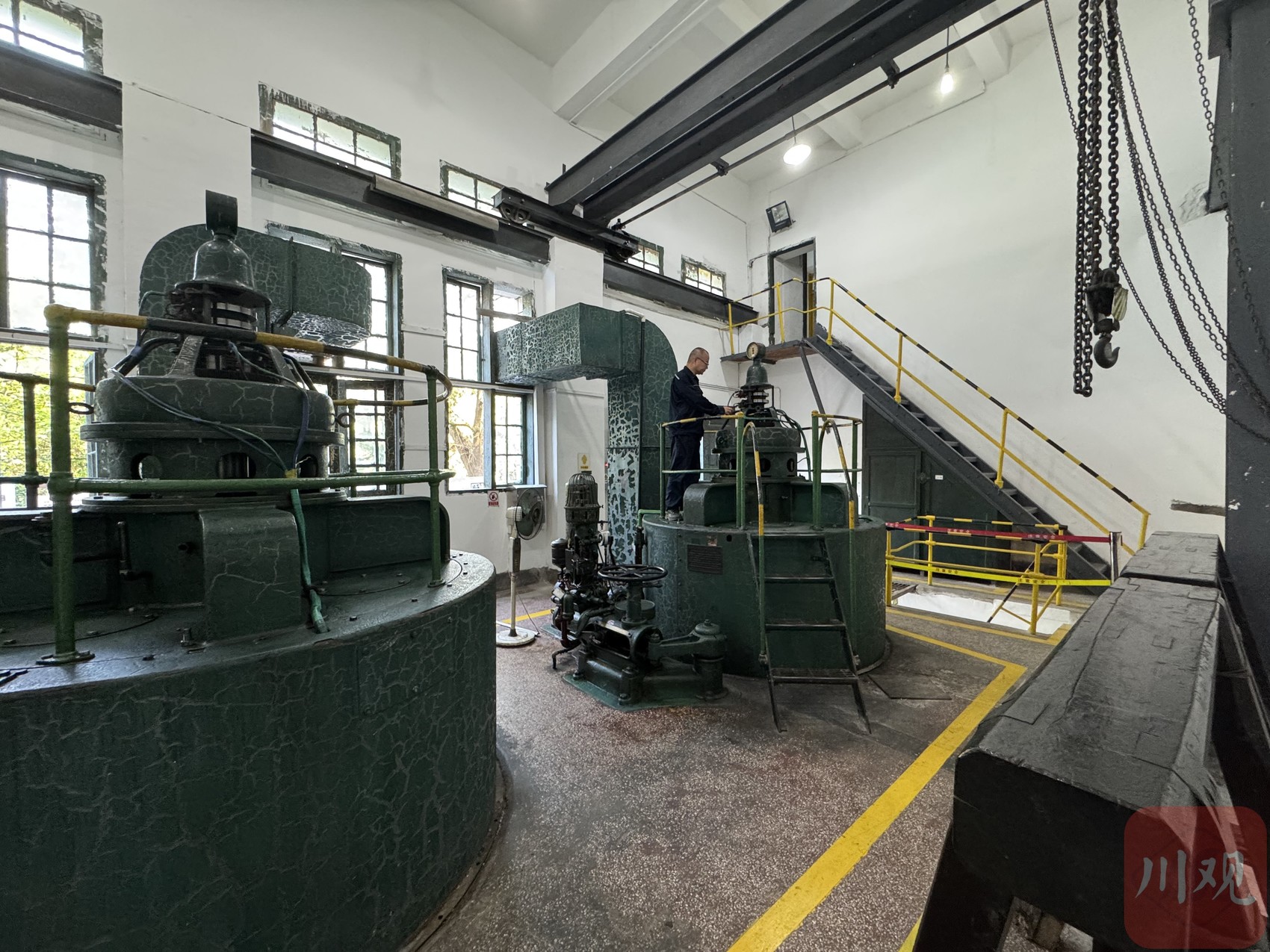 兩臺歷經抗戰風雨的水輪發電機至今還在運轉。(杜杰 攝)