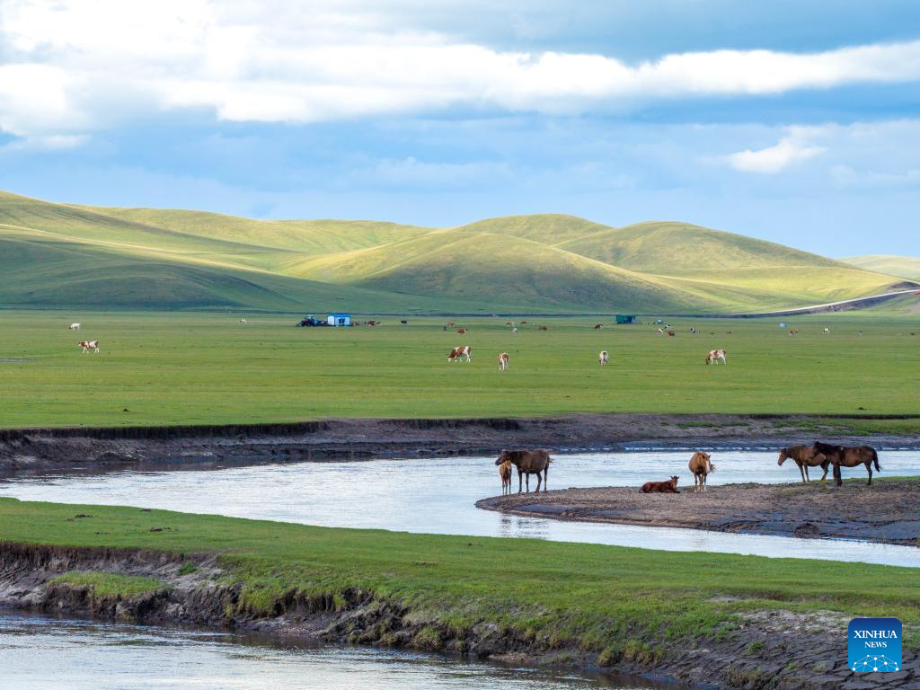 This photo taken on Aug. 19, 2025 shows the scenery along the Mergel Gol River in Hulun Buir, north China's Inner Mongolia Autonomous Region. (Xinhua/Ma Jinrui)