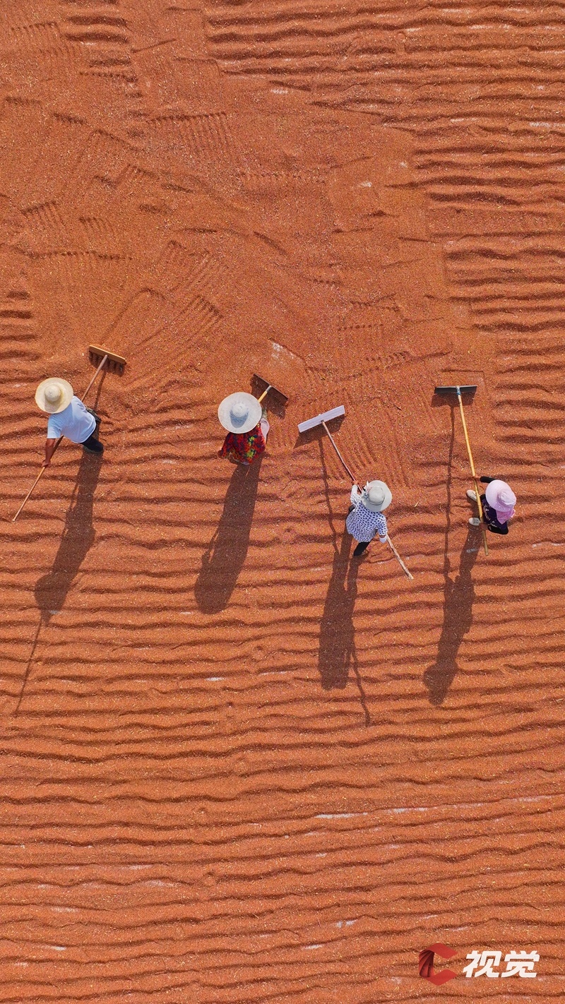 遂寧市安居區橫山鎮石山村優訊農機服務專業合作社的曬場上,村民忙著晾曬高梁。C視覺攝影師 劉昌松 攝