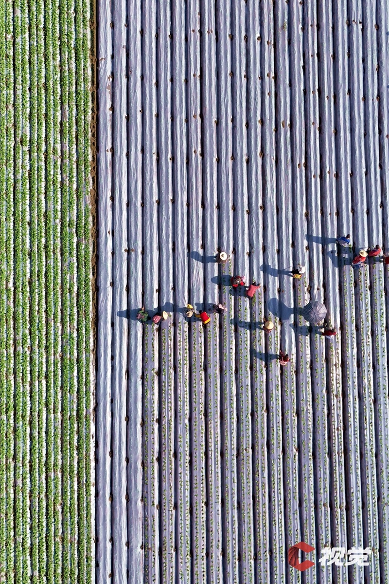 南充市蓬安縣錦屏鎮中壩社區蔬菜種植基地,村民積極投入晚秋作物播種,在地里種植蘿卜。C視覺簽約攝影師 周亮 攝