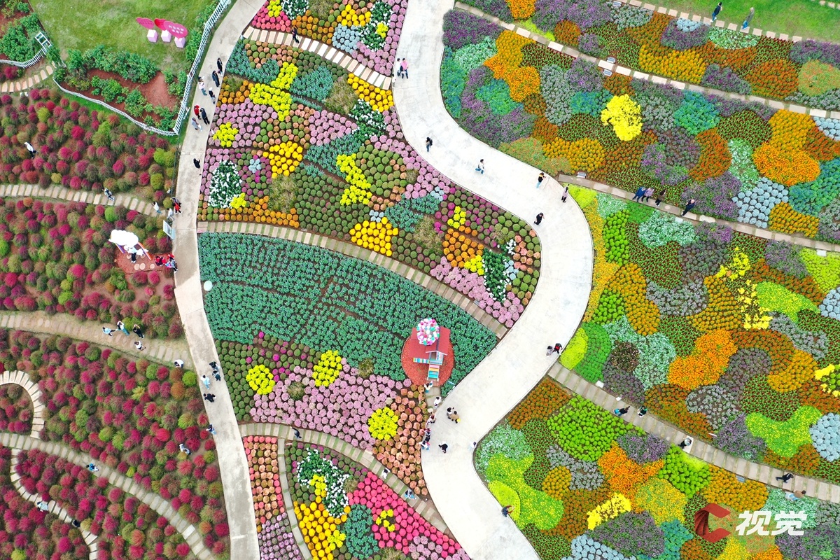 秋季的成都市新都區漫花莊園五彩斑斕,鮮花盛開的花園讓人仿佛置身于春天。C視覺簽約攝影師 曹省利 攝