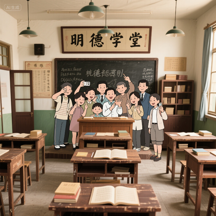 真實復原民國教室場景,黑板、課桌、老課本營造濃厚書香氛圍,不僅是文化體驗,更是拍照出片的絕佳背景。