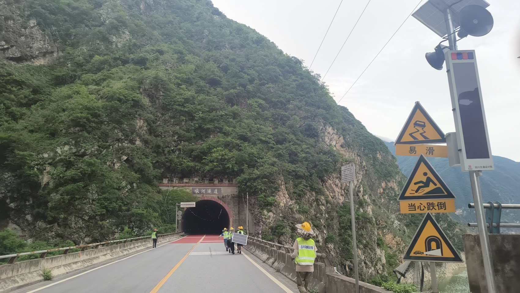 四川省交通勘察設計研究院有限公司隧道與地下工程設計分院院長袁松介紹,項目由自適應可調控太陽能路燈、垮塌風險輔助照明燈、智能拉線位移傳感器、多功能智能示警桿等設備組成,通過在風險路段安裝獨立運行的風險識別輔助設備,零距離識別災害。當公路基礎設施遭受自然災害侵襲時,設備能自動觸發聲光警告,為司機預警。同時,集成光電采儲一體化能源供給系統,可自發自用提供夜間照明,并為監測設備提供持續電源。“實現不間斷運行、自發式示警、自給式供能于一體。”