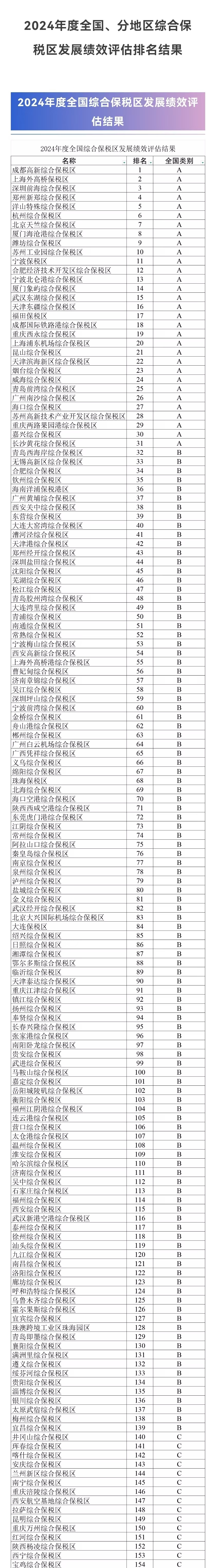 8月27日,記者從成都高新區獲悉,昨日海關總署公布2024年度全國、分地區綜合保稅區發展績效評估排名結果,成都高新綜合保稅區在全國154個參評綜合保稅區中脫穎而出,位居全國綜合保稅區發展績效排名榜首。