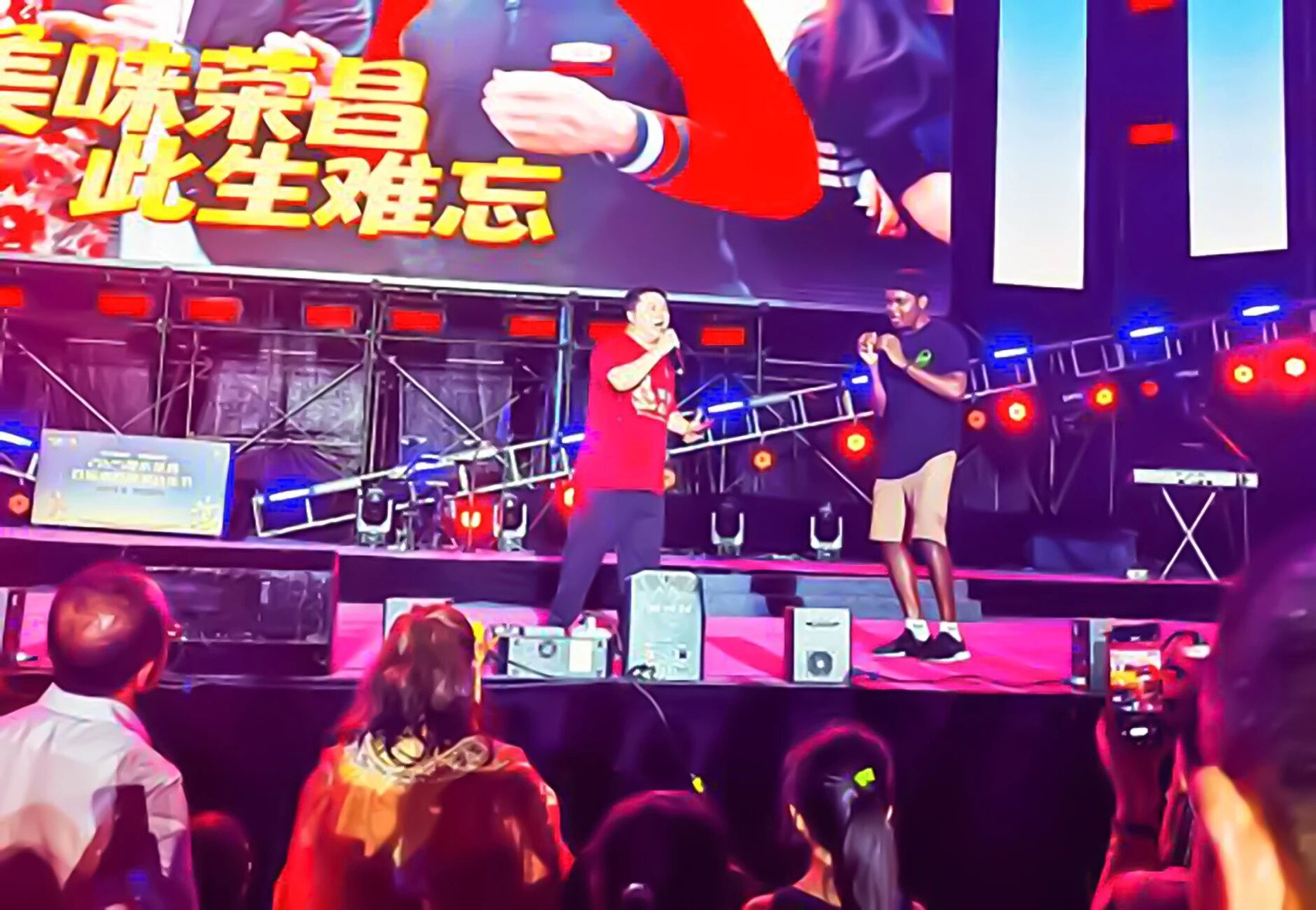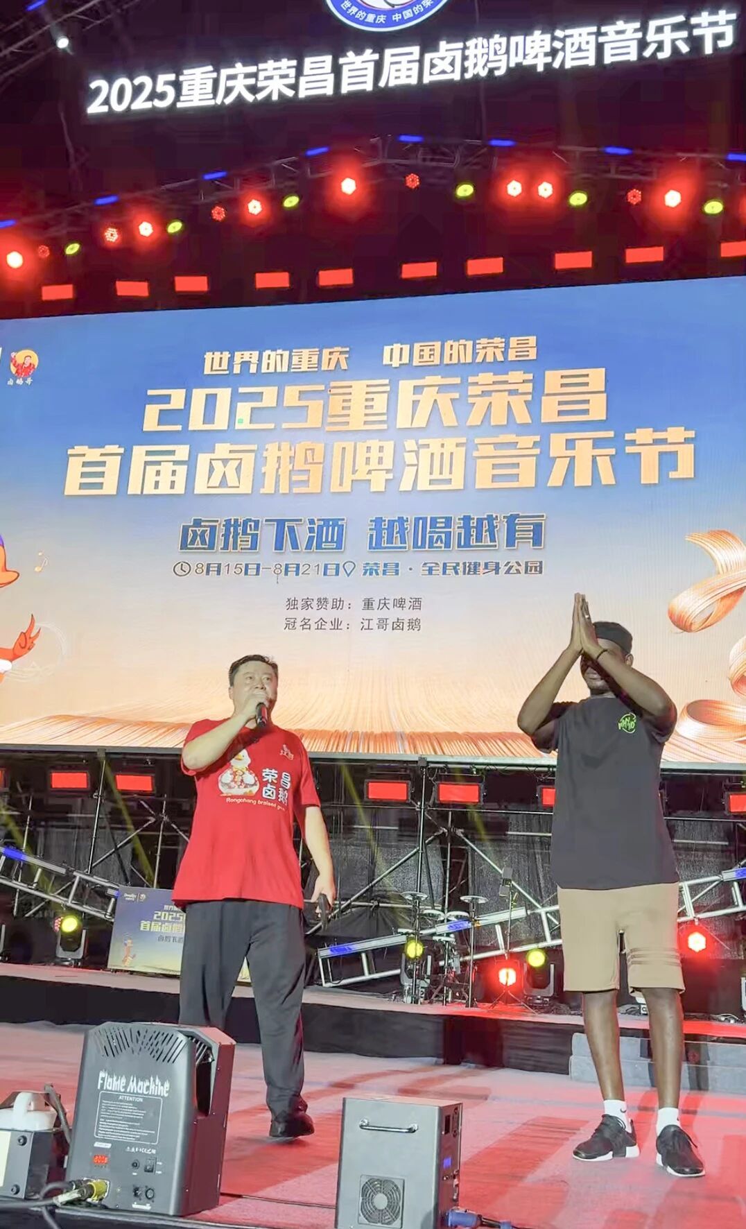 “鹵鵝哥”林江(左)在首屆鹵鵝啤酒音樂節現場傾情獻唱。