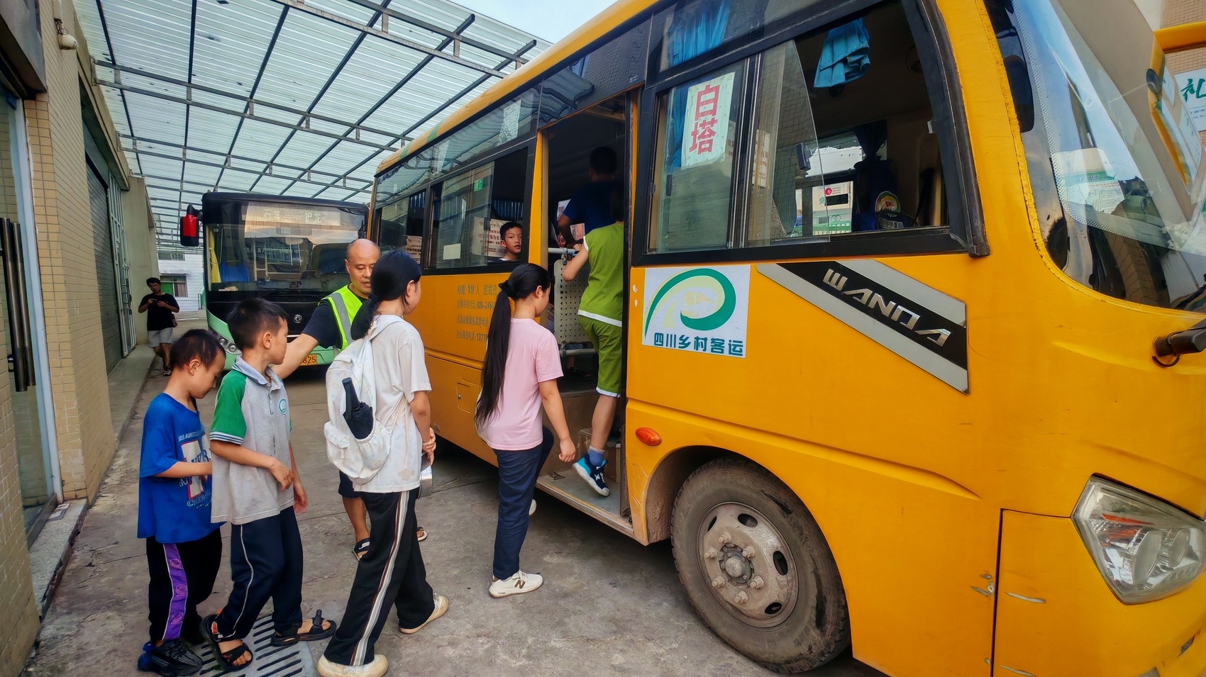 9月4日下午5點30分,在資陽市安岳縣白塔寺九年制學校門口,5輛中小型客車正緩緩駛入校園停車區。放學鈴聲響起,學生們在老師的細心指引下有序排隊上車。