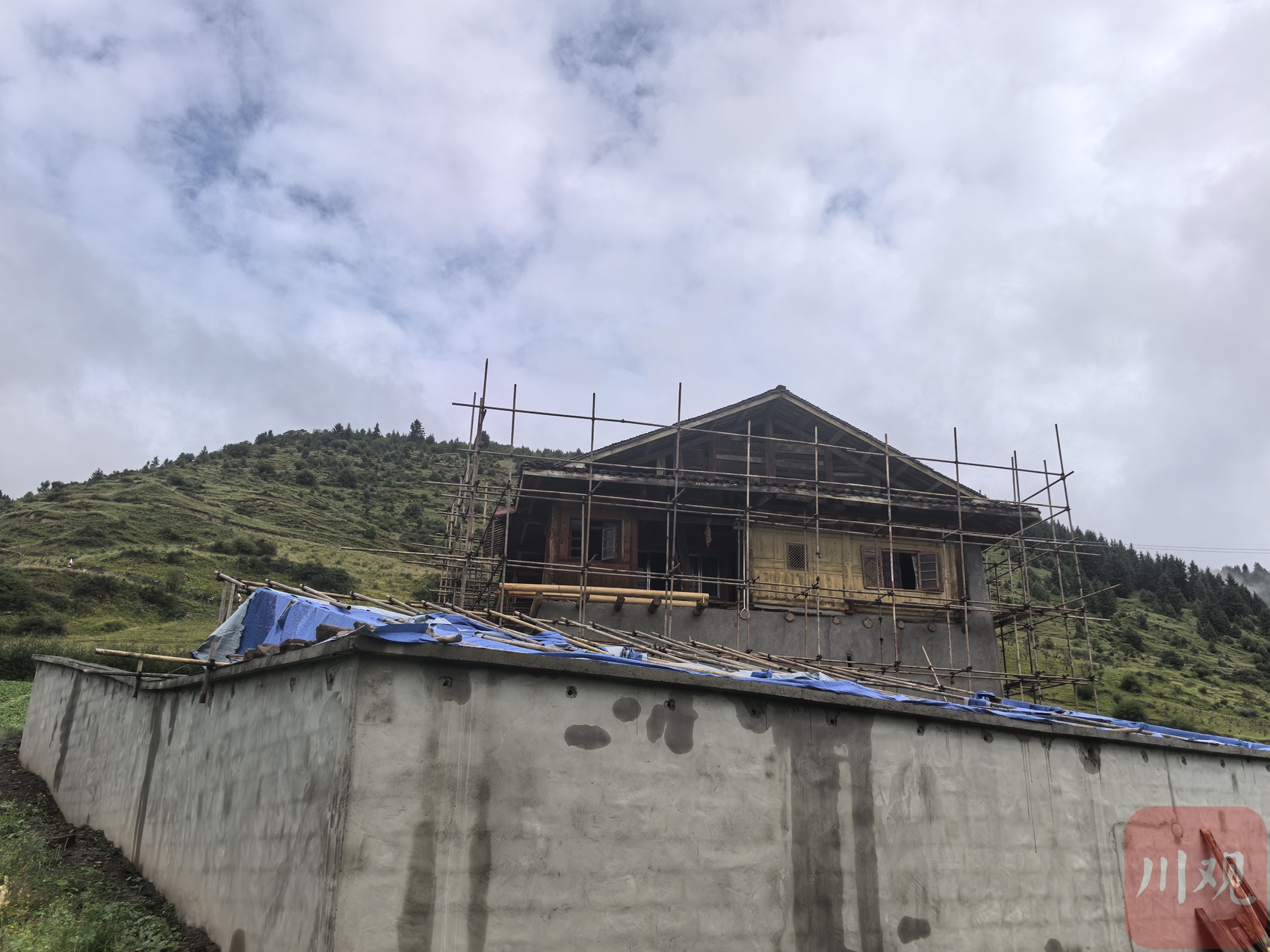 9月5日,松潘縣毛爾蓋鎮(zhèn)克藏村的河谷坡地上,黃色挖掘機轟鳴著平整場地,一處石木結構民居外,腳手架環(huán)繞,工人們正穿梭忙碌。這處正在修繕的老舊建筑,是“長征國家文化公園松潘段”規(guī)劃中克藏村“紅色文化體驗地”的核心項目——毛澤東舊居。