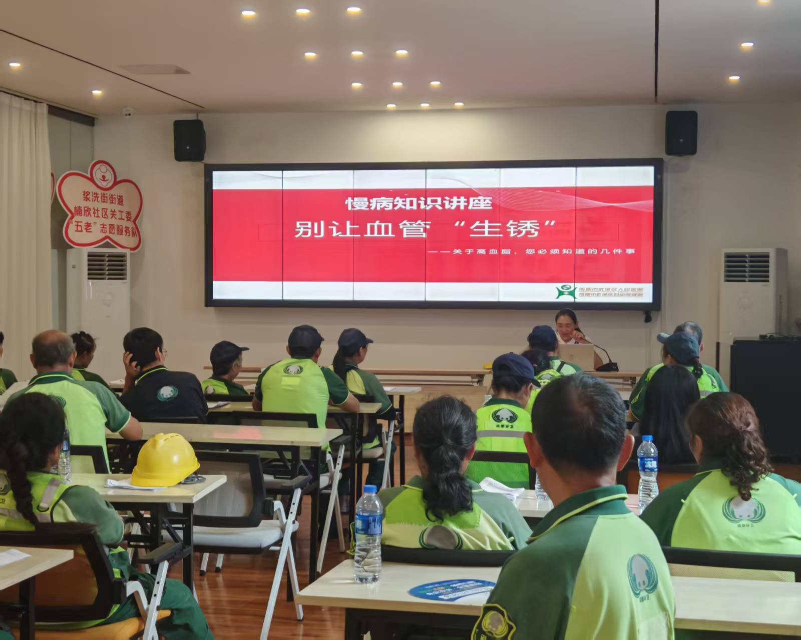 來自武侯區人民醫院心內科劉主任和消化內科曾主任,圍繞血管健康與肝臟疾病防治兩大主題,用通俗易懂的語言,結合環衛工人職業特點,向大家細致講解高血壓、高血脂等常見疾病的預防措施,并針對體檢報告中常見的異常指標提供專業解讀。現場還設置了一對一健康咨詢環節,內科、外科、婦科等多科室醫生耐心解答大家的疑問,幫助環衛工人更清晰地掌握自身健康狀況。