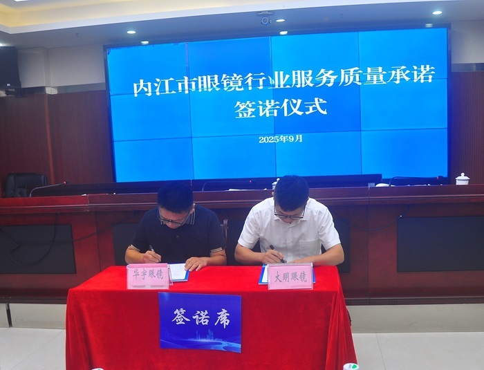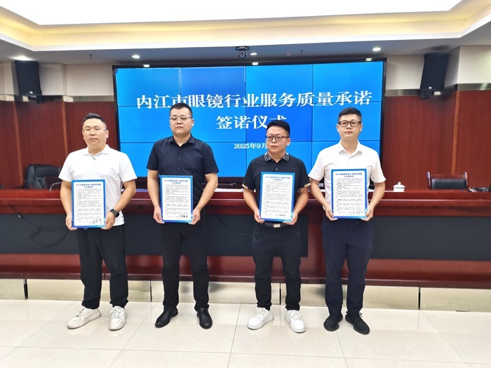 啟動儀式上,陳勇就內江市首次舉行服務質量承諾活動政策進行了解讀;鏡匠人、九宜、大明、華宇眼鏡裝配企業通過PPT或播放視頻的方式進行了展示,同時,簽訂并宣讀了承諾書。