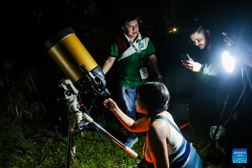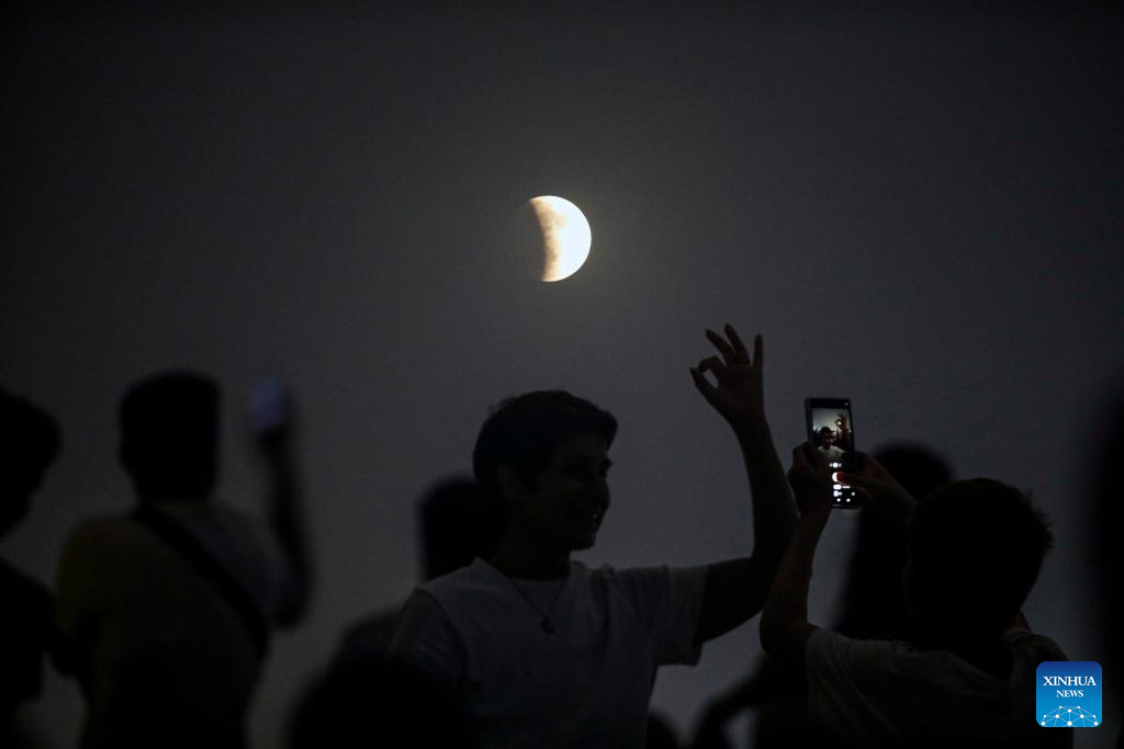 People observe a lunar eclipse in Quezon City, the Philippines, Sept. 8, 2025. (Xinhua/Rouelle Umali)