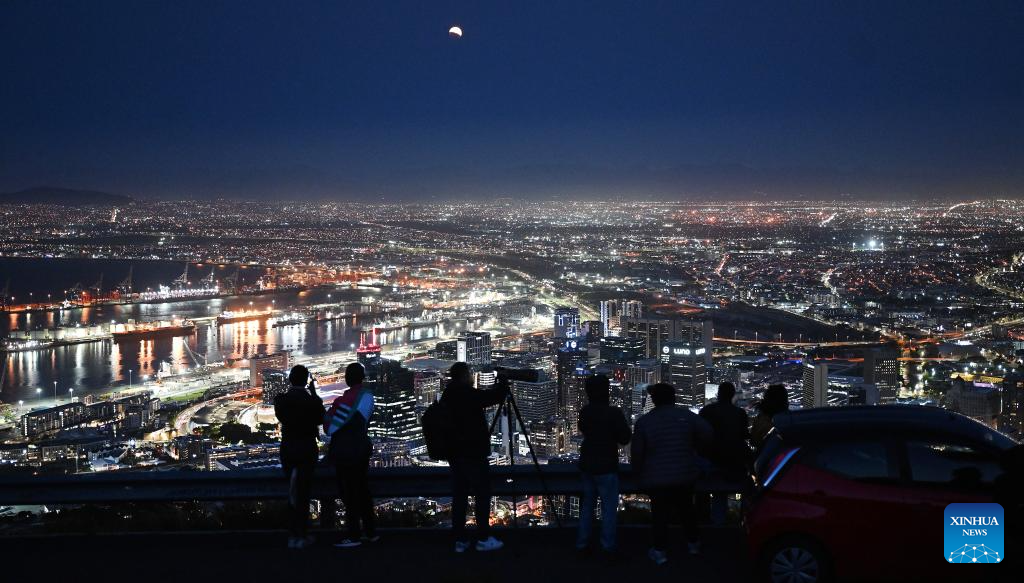 People watch a lunar eclipse in Cape Town, South Africa, Sept. 7, 2025. (Photo by Xabiso Mkhabela/Xinhua)