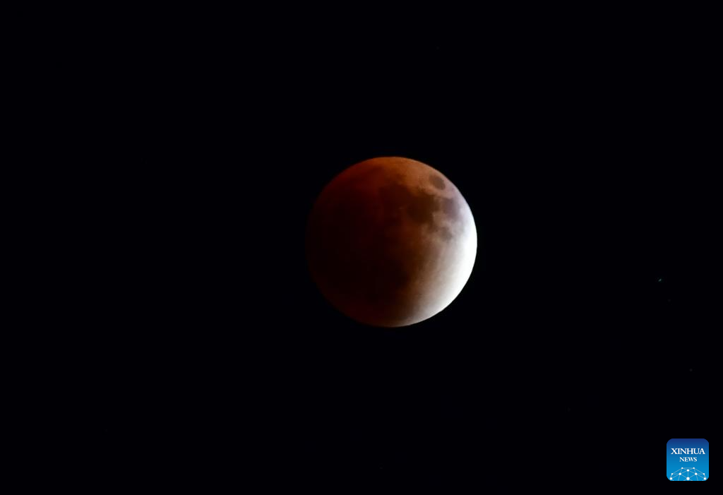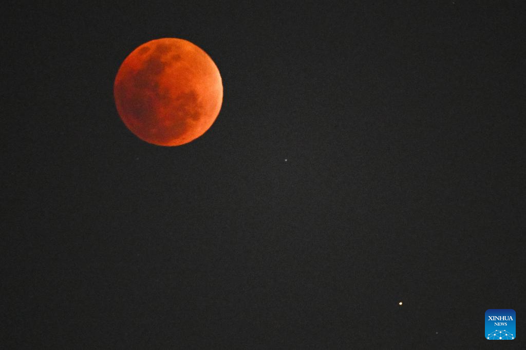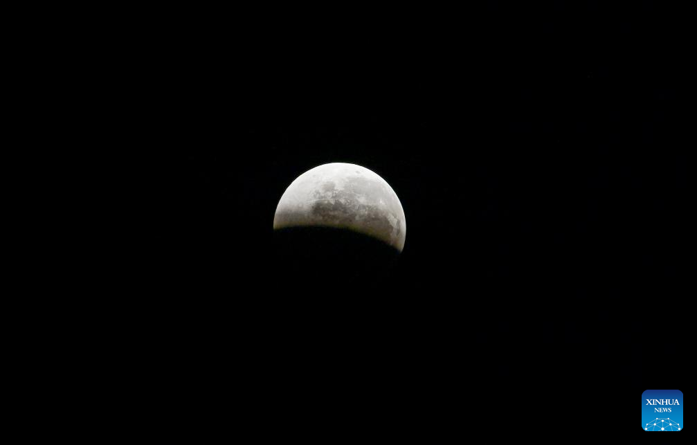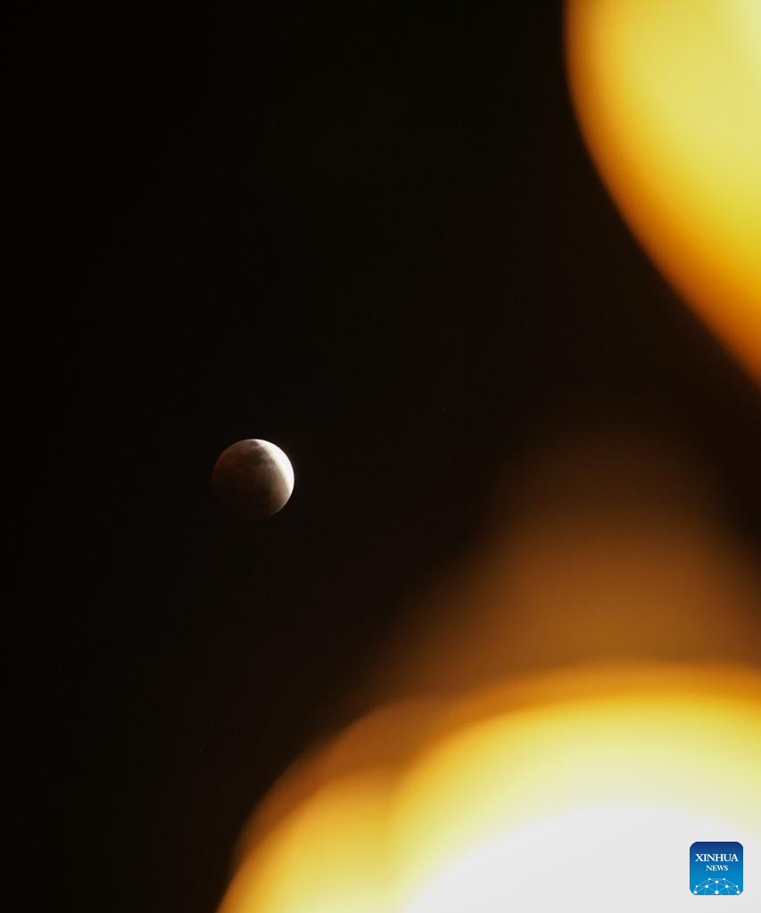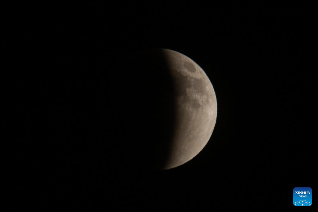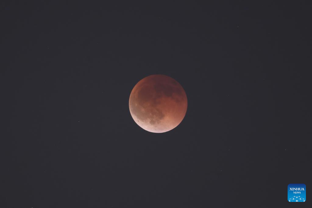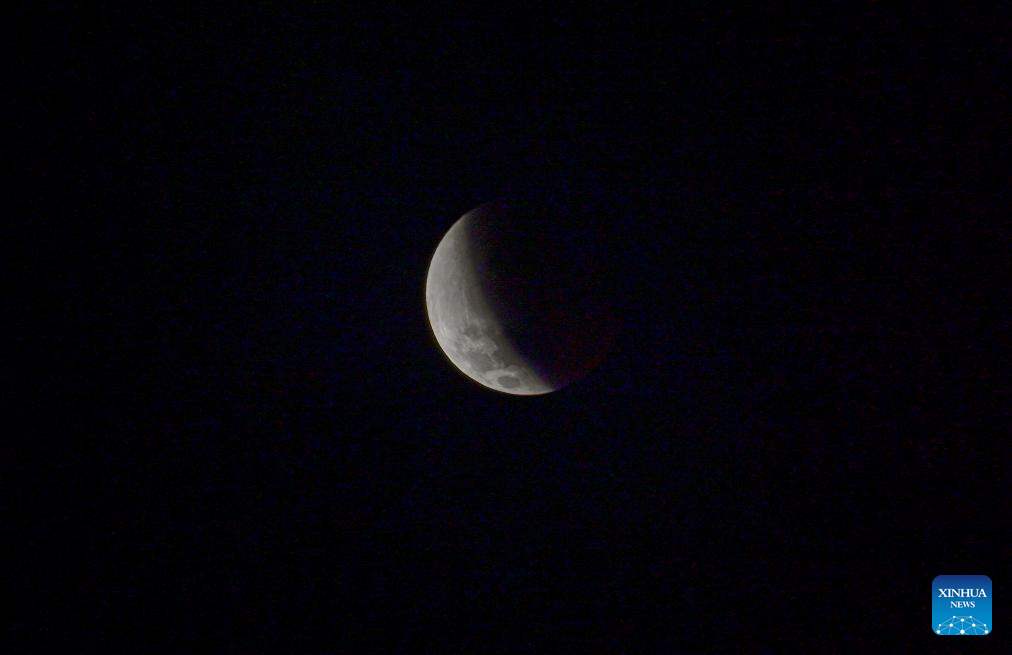 This photo shows the lunar eclipse in Canberra, Australia, Sept. 8, 2025. (Photo by Chu Chen/Xinhua)