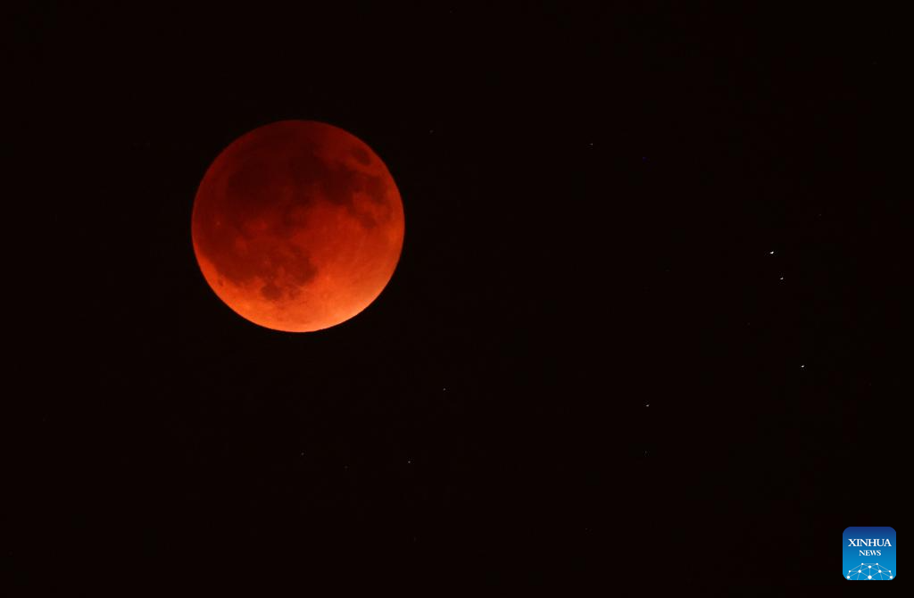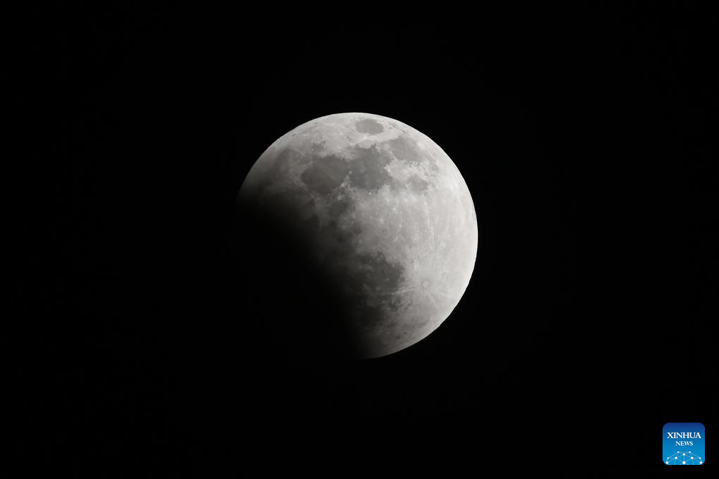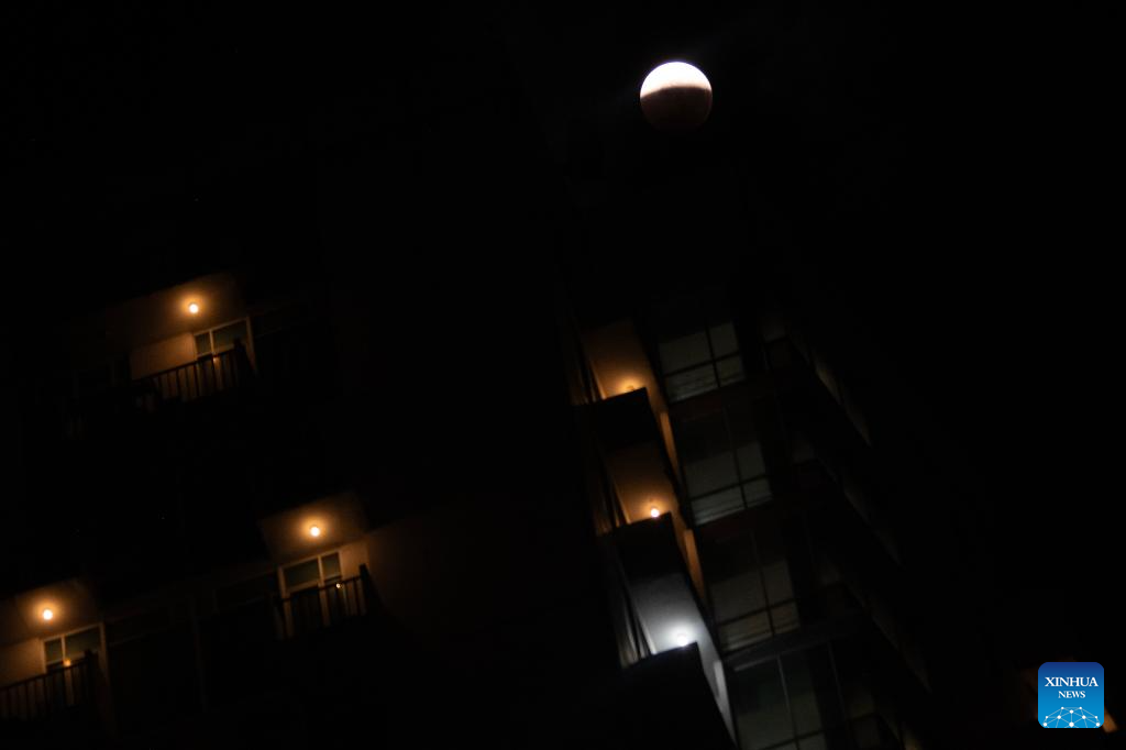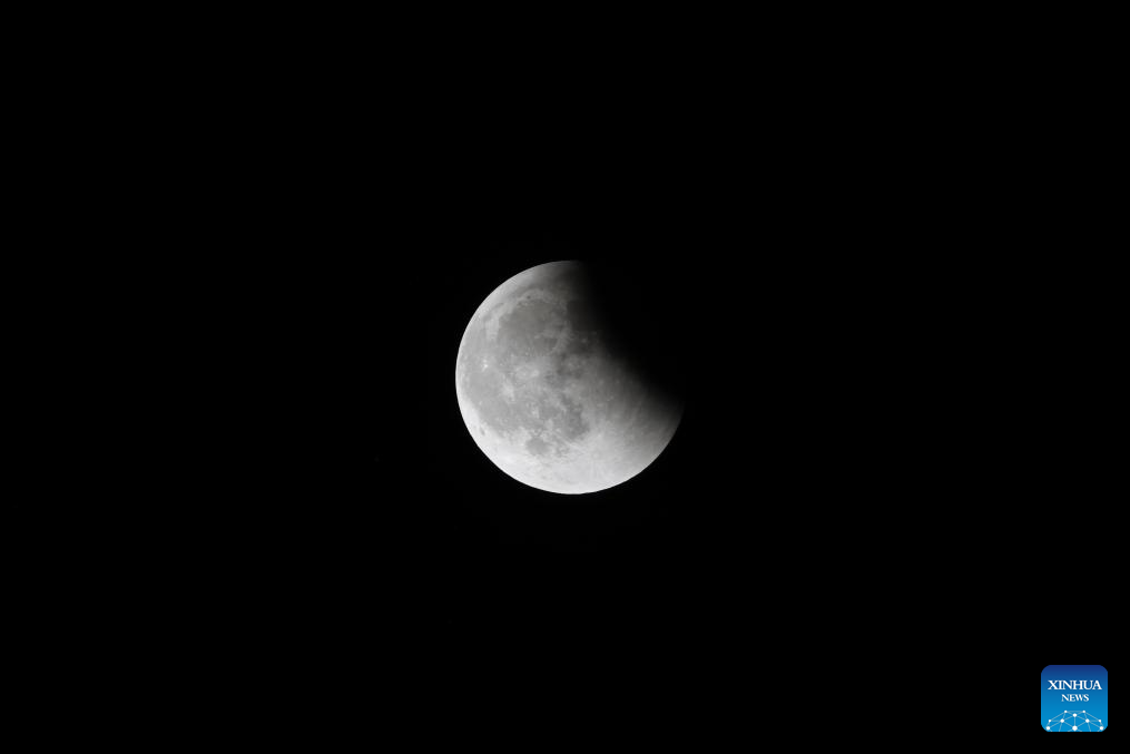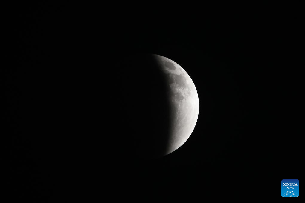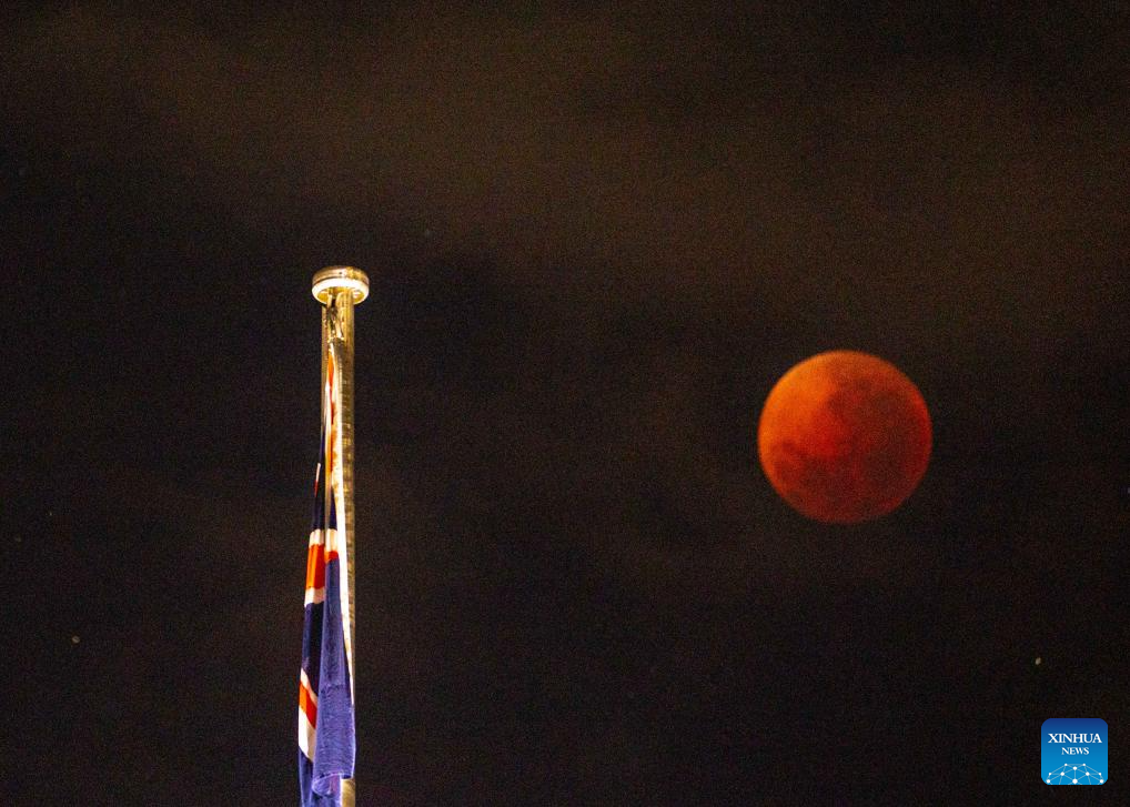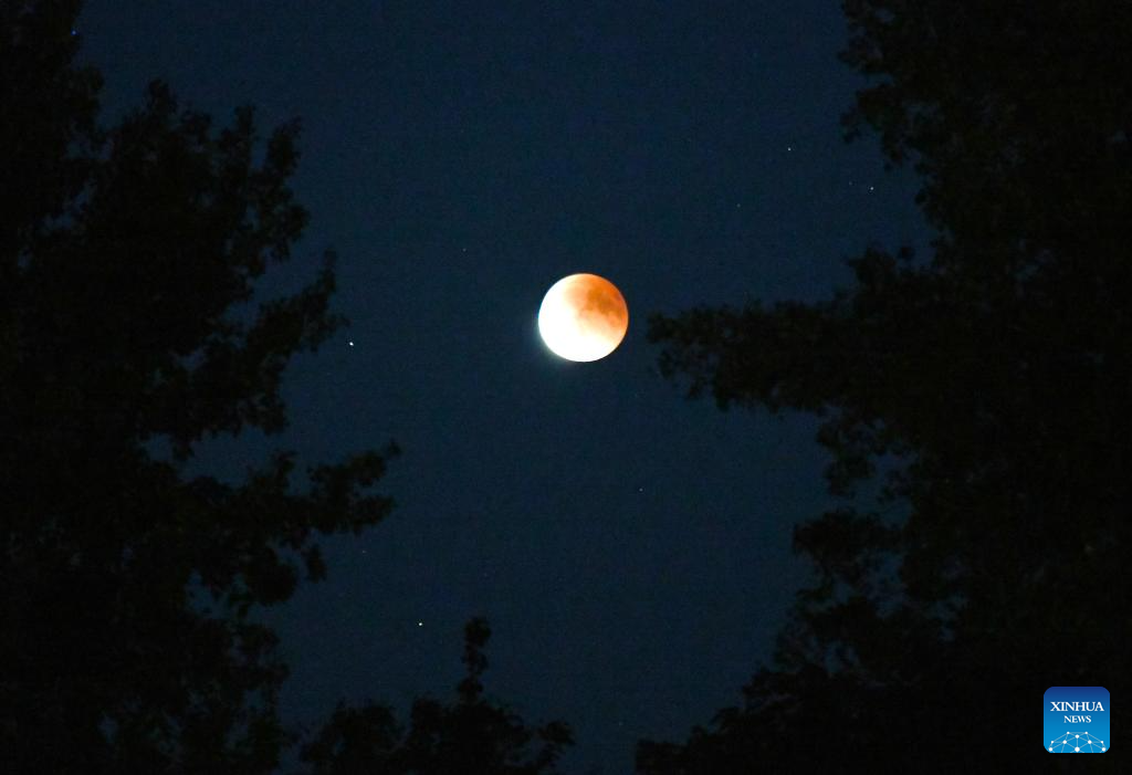 This photo shows the lunar eclipse in Canberra, Australia, Sept. 8, 2025. (Photo by Chu Chen/Xinhua)