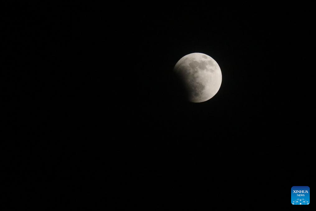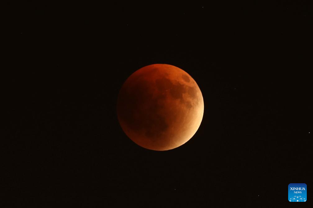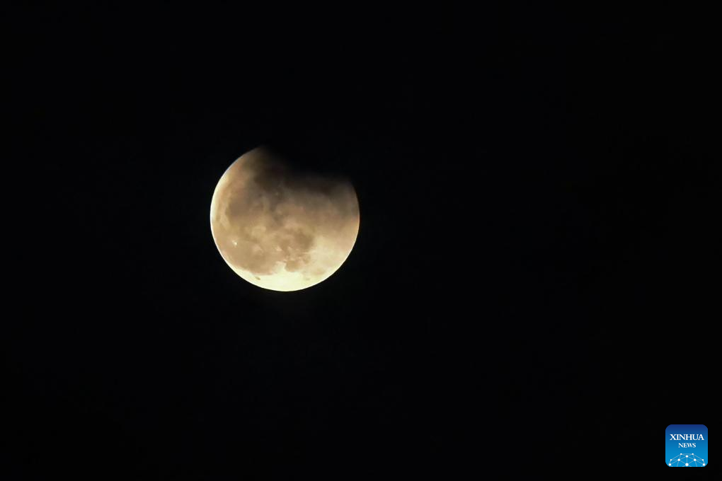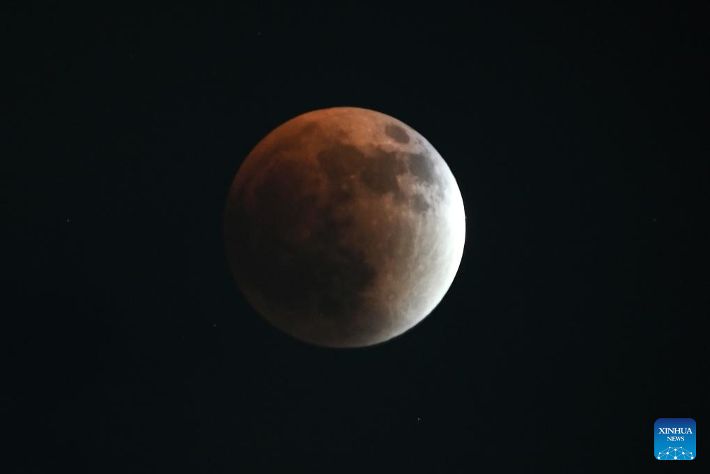 This photo taken on Sept. 7, 2025 shows a view of lunar eclipse in Yaounde, Cameroon. (Xinhua/Kepseu)