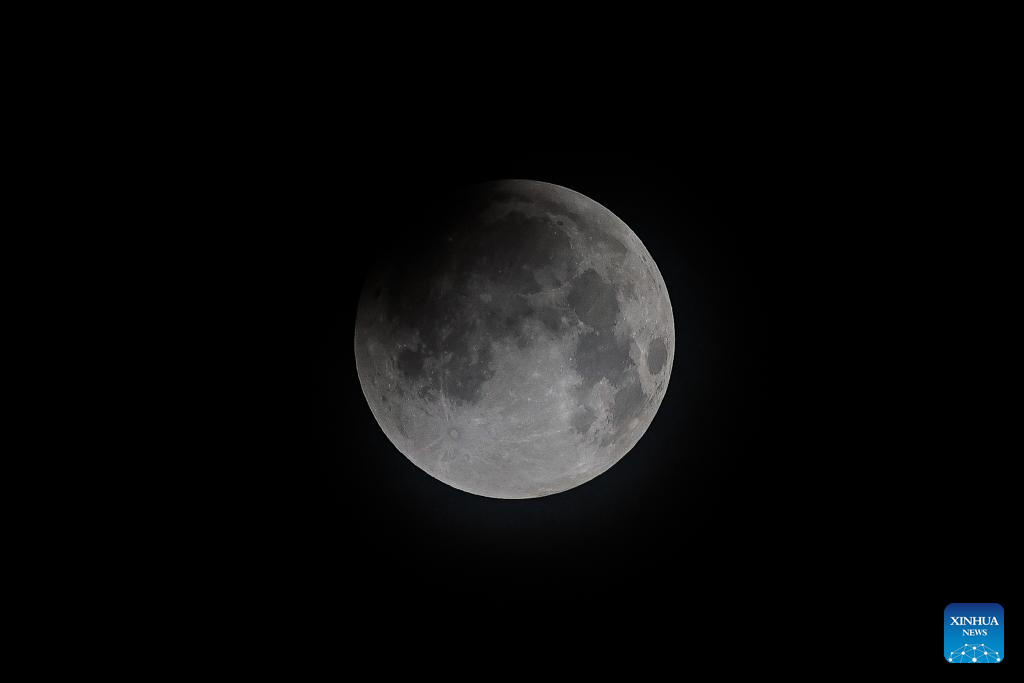 The moon is seen during a lunar eclipse in Modi'in, Israel, Sept. 7, 2025. (Photo by Gil Cohen Magen/Xinhua)