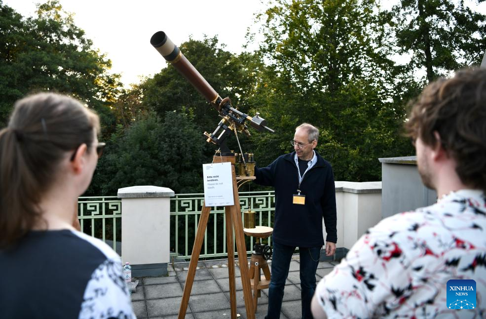 The Archenhold Observatory opened to the public free of charge on Sunday evening, allowing visitors to experience the charm of astronomy up close. (Xinhua/Zhang Haofu)