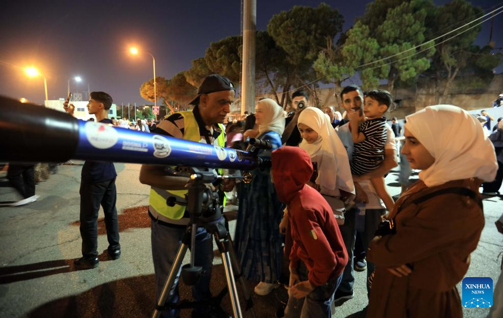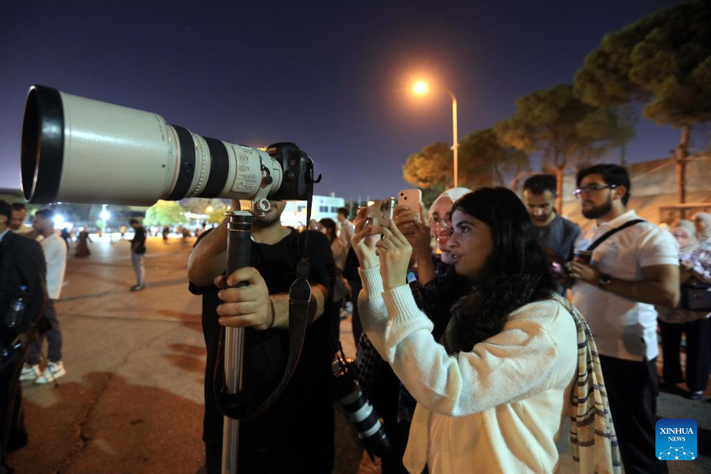 Astronomy enthusiasts observe a lunar eclipse in Amman, Jordan, Sept. 7, 2025. (Photo by Mohammad Abu Ghosh/Xinhua)