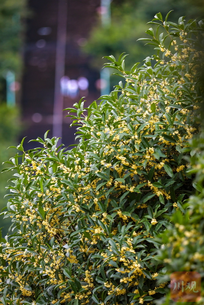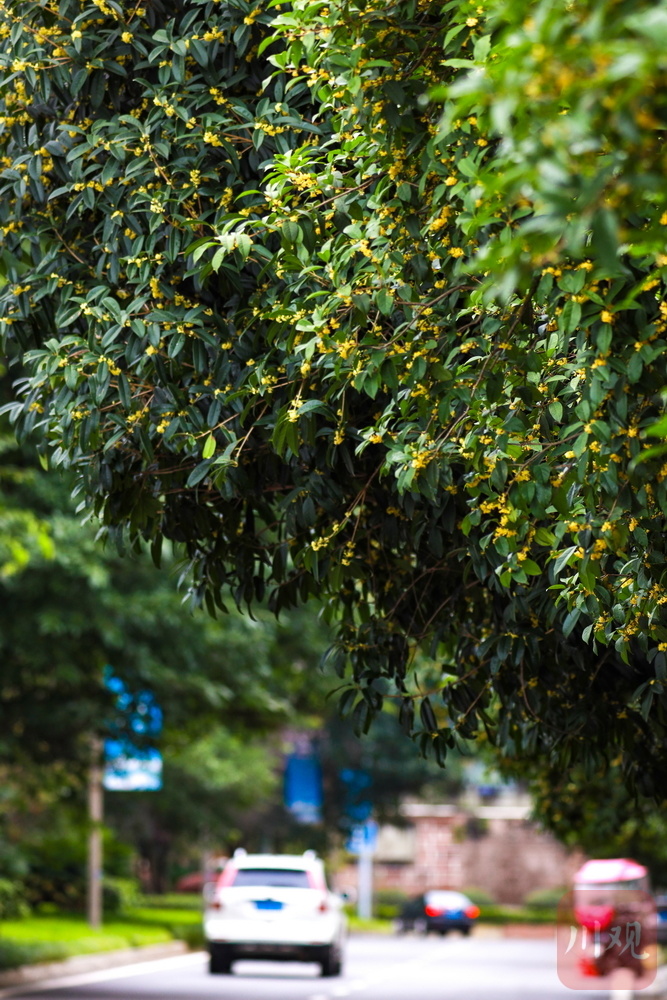 白露黃橙熟,清風綠桂生。隨著白露節氣的到來,雅安城區一些街道兩側以及公園的桂花陸續進入盛花期,或淺黃、或橙紅的小花綴滿枝頭,讓城市充滿著桂花的香氣。