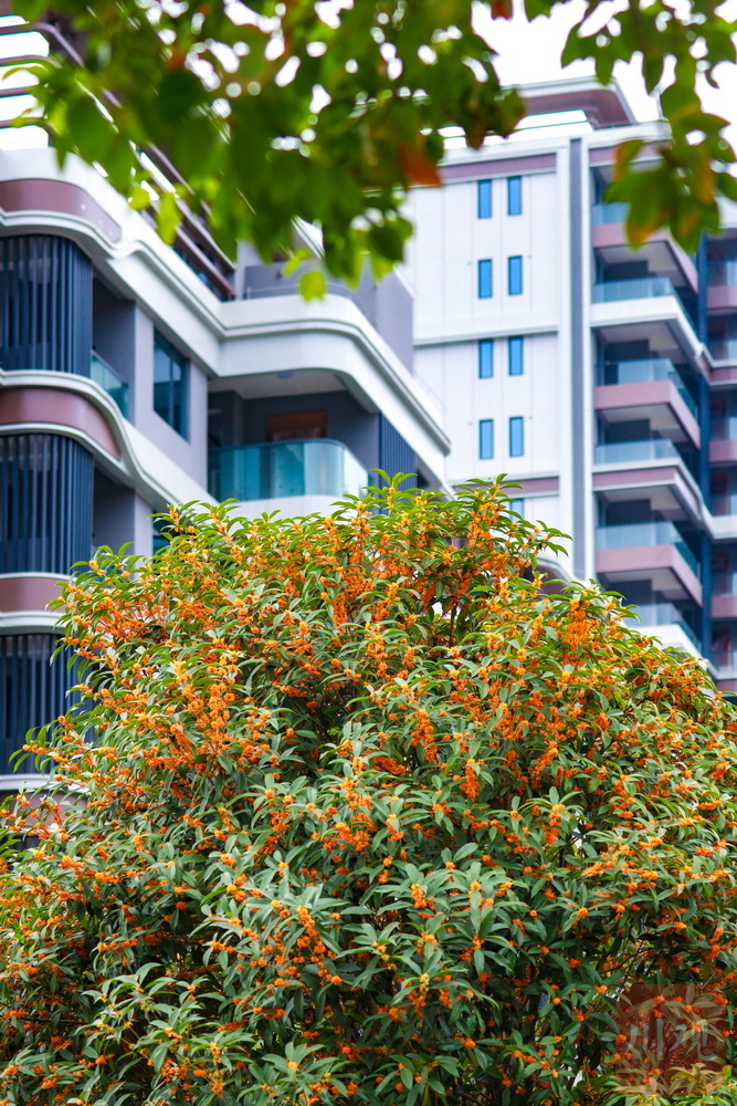街道兩邊的桂花綴滿枝頭,太好看了?