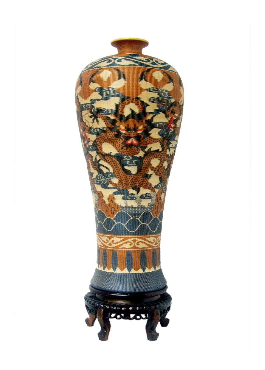 竹編作品《彩色瓷胎竹編龍紋梅瓶》 作者:劉嘉峰
