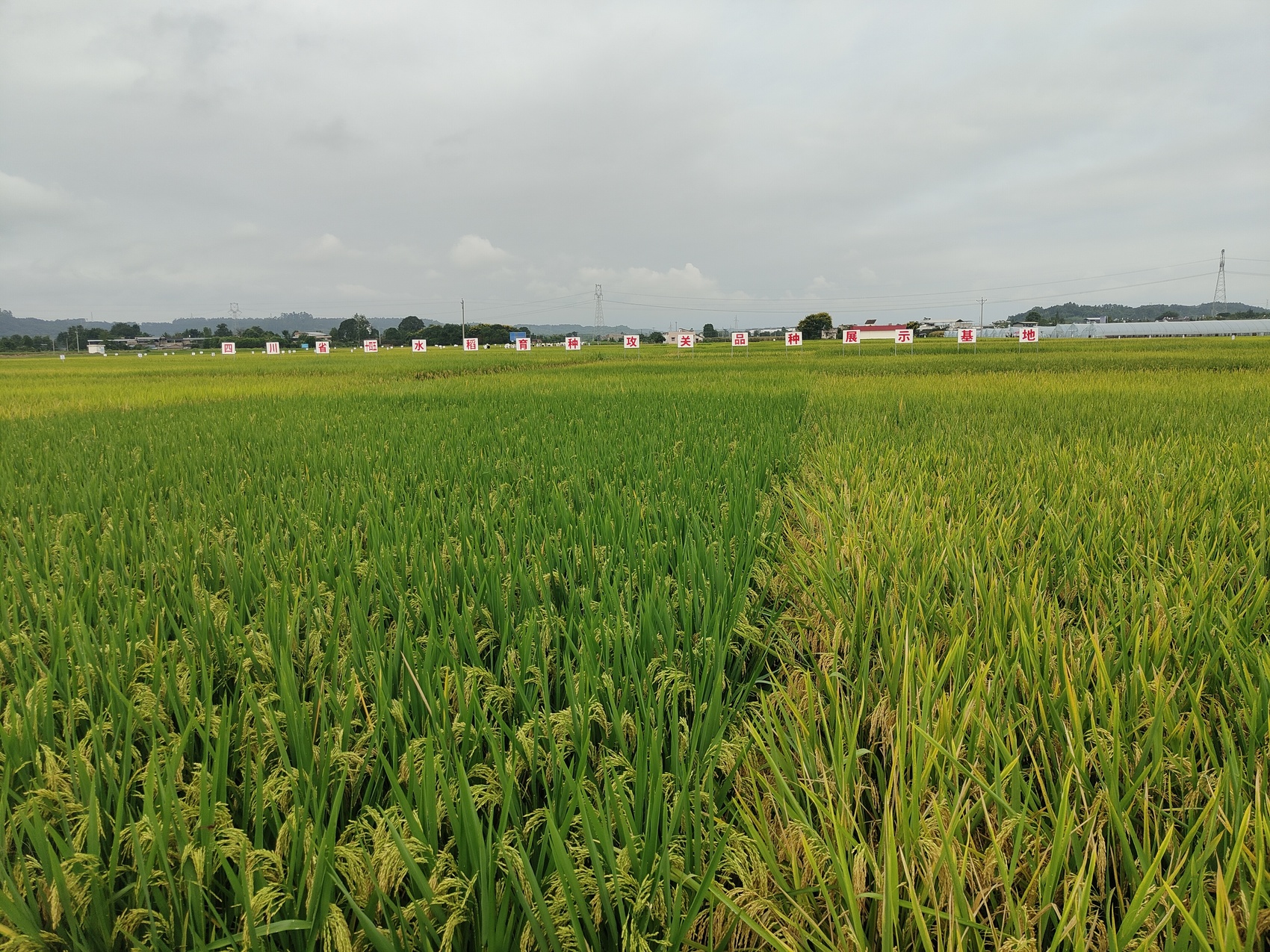 展示基地里,不同品種的水稻整齊排列,形成一片壯觀的稻海。每個品種前方都立著標識牌,詳細記載著品種特性、選育單位等信息。