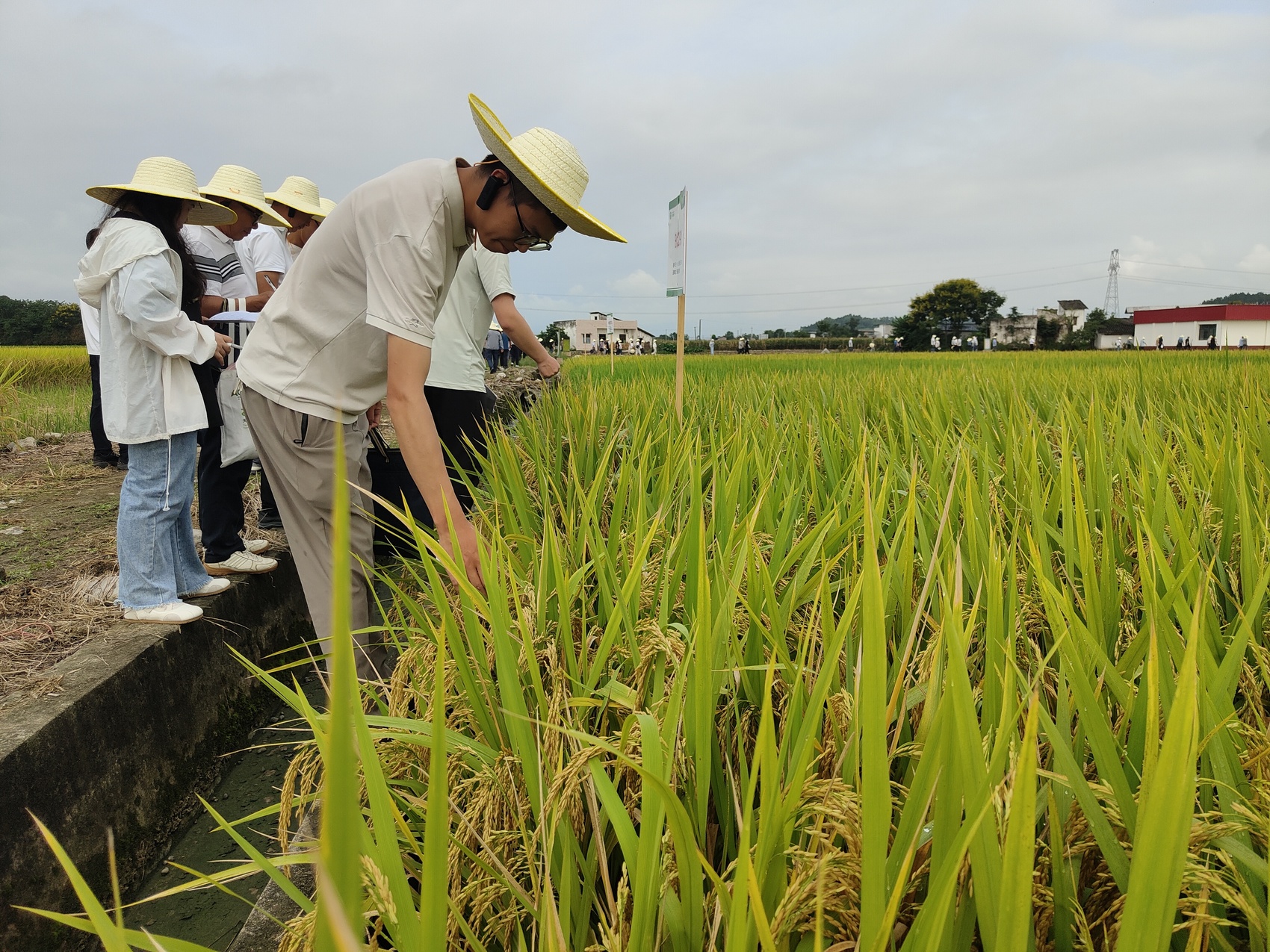與會代表們穿行在田埂間,時而俯身察看稻穗飽滿度,時而輕撫稻葉觀察形態(tài),不時交流著觀察心得。