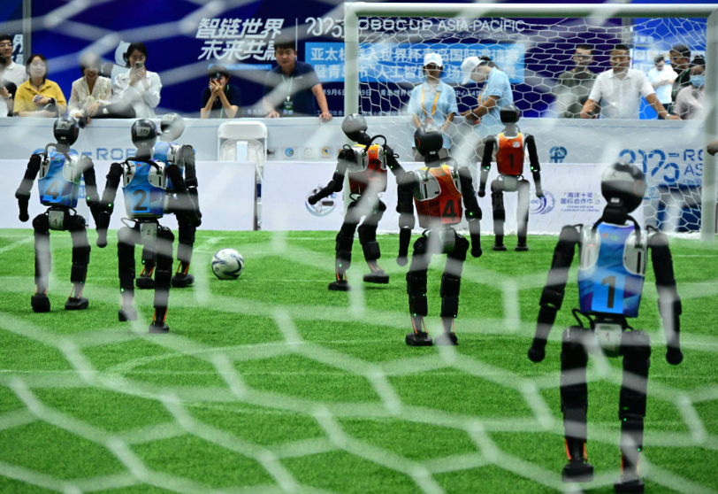9月6日至9日,2025亞太機器人世界杯青島國際邀請賽在青島世界博覽城國際展覽中心舉行。其中,人形機器人足球賽吸引了眾多觀眾前來觀賽。