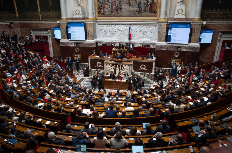 9月8日,法國總理貝魯在位于巴黎的國民議會內發表演講。
