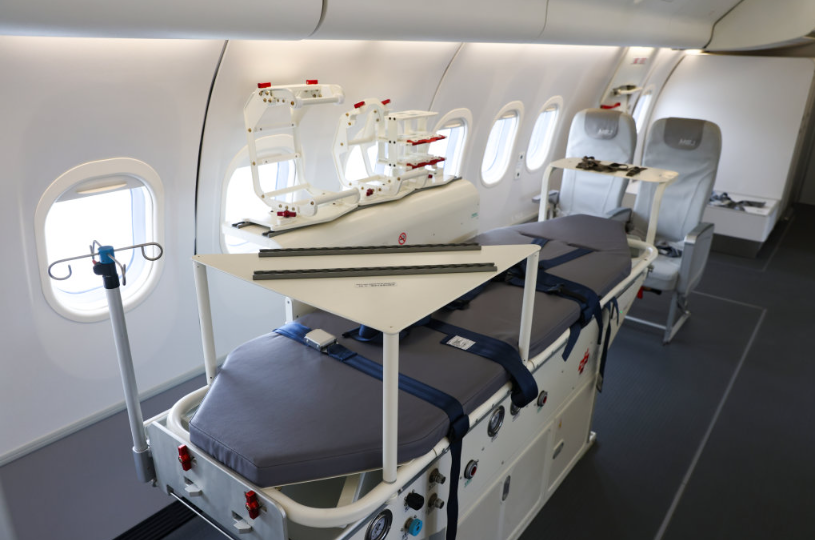 據悉,C909醫療機最大設計商載10噸,標準航程可達3700公里,具備高高原機場起降能力。艙內布局可根據不同救援需求靈活改裝,能夠滿足醫療救援隊伍出行、邊遠地區醫療救助、傷病員轉運等多場景應用。