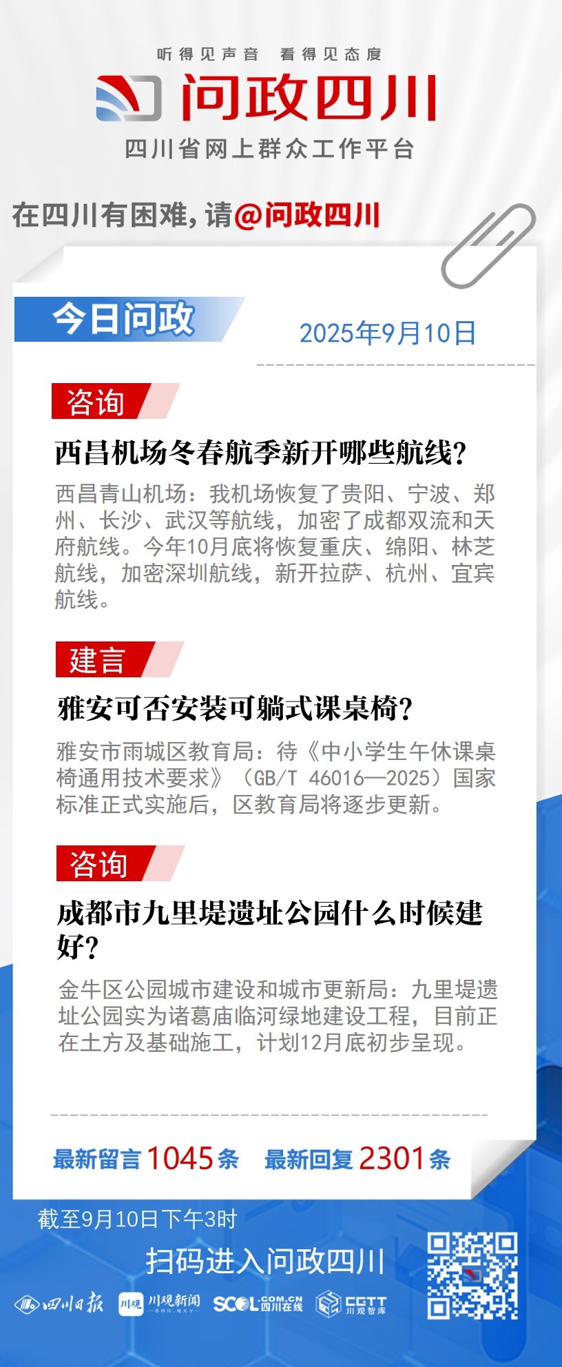 問政四川網友提問:現在進入航線換季前期,這次換季,西昌青山機場將新開哪些航線?