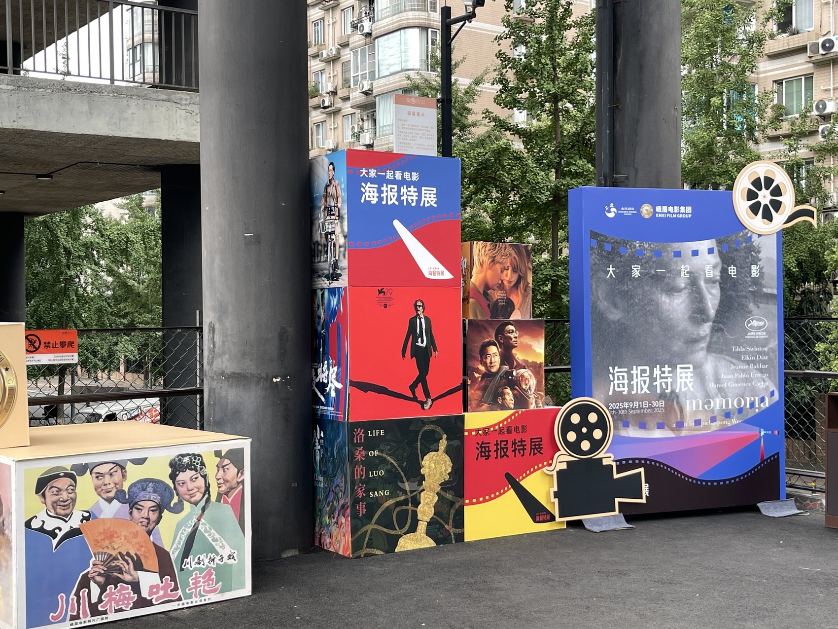 9月10日,在成都西村大院的環形跑道上,一場關于光影的時空對話正在發生。當天,第二屆金熊貓獎“大家一起看電影”展映活動之“峨影浪漫 時代美學”電影海報特展,讓建筑空間與電影藝術展開了一場前所未有的美學碰撞。